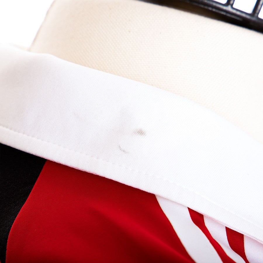 Modello di Maglia Home del Milan stagione 2012/2013 preparata/indossata da Acerbi. Logo Milan cucito. Lo sponsor Fly Emirates è stampato. Lo sponsor tecnico Adidas è ricamato. Sul retrocollo è termoapplicata in bianco la personalizzazione di Acerbi col numero 13 e sul retrocollo è cucita la lettering AC MILAN. Sul fronte è cucita la lettering IL CLUB PIU' TITOLATO AL MONDO. Sulla manica destra c'è la patch Serie A mentre sulla sinistra c'è quella della Champions.
