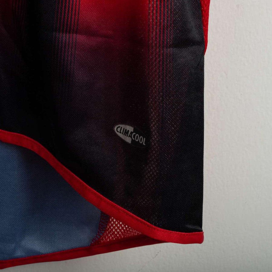 Maglia home del Milan stagione 2004/2005 realizzata da Adidas. Classico design rossonero con strisce verticali rosse e nere sfumate. Sponsor centrale "Opel" applicato in bianco. Logo Adidas ricamato sul petto destro e stemma AC Milan con stella sul lato cuore. Nome "CAFU" e numero 2 applicati sul retro in oro, con piccolo stemma Milan alla base del numero. Tecnologia Climacool per una migliore traspirabilità. Taglia M. Prodotto ufficiale Adidas, fornitore tecnico AC Milan.