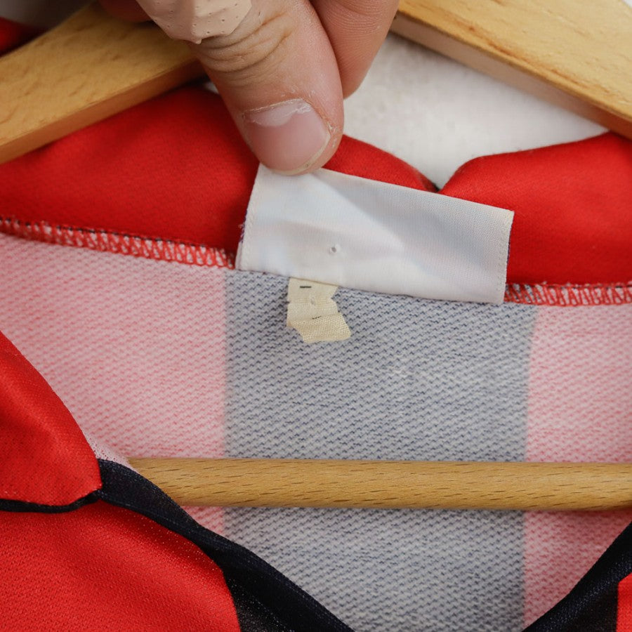 Maglia home ufficiale del Milan per la stagione 1987/1988, realizzata dallo sponsor tecnico Kappa. Il classico design rossonero presenta le iconiche strisce verticali nere e rosse, abbinate a un colletto a polo che conferisce un tocco elegante. Lo sponsor commerciale Mediolanum campeggia al centro del petto, mentre la stella dorata sopra lo stemma simboleggia i dieci scudetti vinti dal club. La maglia è a maniche lunghe, taglia S.