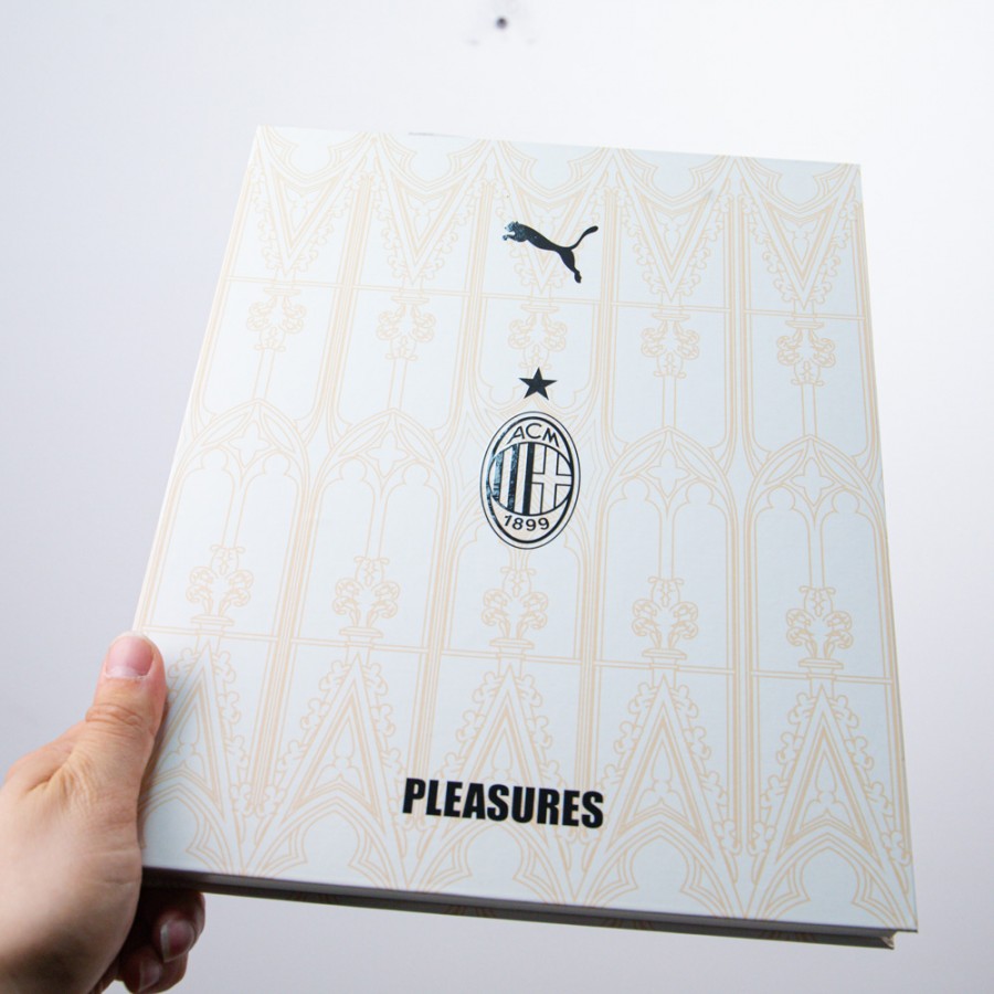 Maglia ufficiale dell'AC Milan per la stagione 2023/2024, realizzata in collaborazione con Pleasures e Puma.