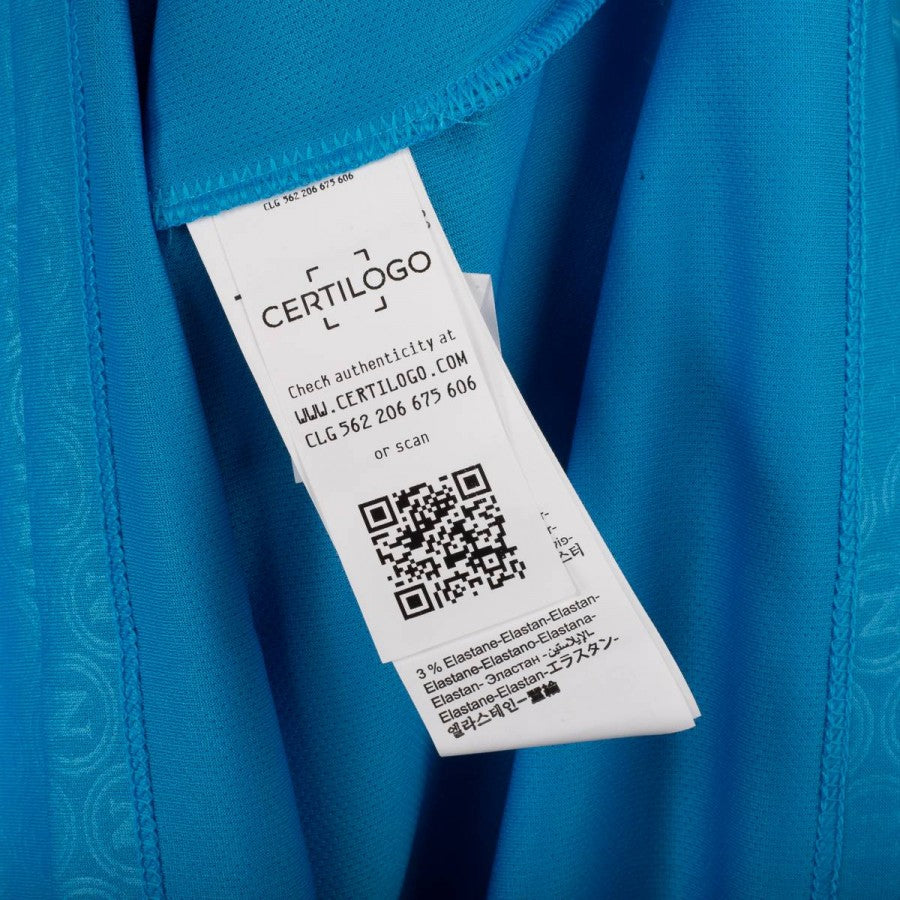 Maglia Home Napoli Ea7 Kvaratskhelia 77 2022/2023. La maglia presenta lo sponsor tecnico EA7 e gli sponsor commerciali Lete, MSC e Amazon. Sul fianco destro è applicata la patch celebrativa "SSC Napoli Campione 2023" un simbolo storico per la stagione della consacrazione. Taglia Medium. Kvaratskhelia è stato uno dei protagonisti assoluti della cavalcata azzurra verso il terzo tricolore, conquistando i tifosi con giocate spettacolari e gol decisivi. Una maglia iconica di una stagione indimenticabile per il club partenopeo.