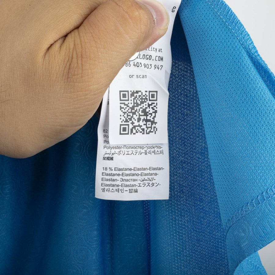 Maglia home del Napoli utilizzata nella stagione 2023/2024, prodotta da EA7. Modello azzurro con dettagli tricolore su colletto e maniche, e texture personalizzata con “N” tono su tono. Stemma SSC Napoli applicato lato cuore e logo EA7 lato destro. Scudetto tricolore cucito al centro del petto. Sponsor MSC e Upbit applicati in stampa. Patch Serie A TIM 2023/2024 sulla manica destra. Nome Lobotka e numero 68 applicati in stampa bianca sul retro. Vestibilità regolare. Taglia M.