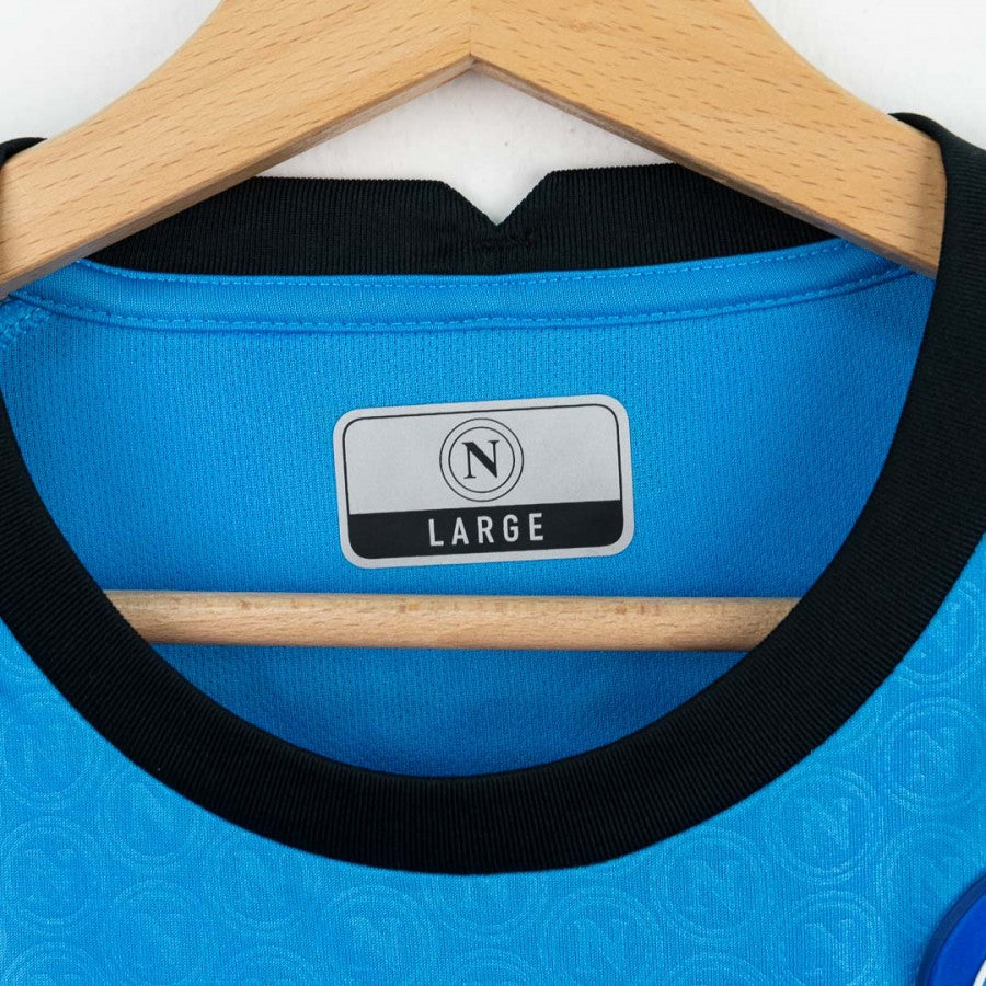 Presenti anche le patch Serie A e Napoli campione 2023 sulle maniche.