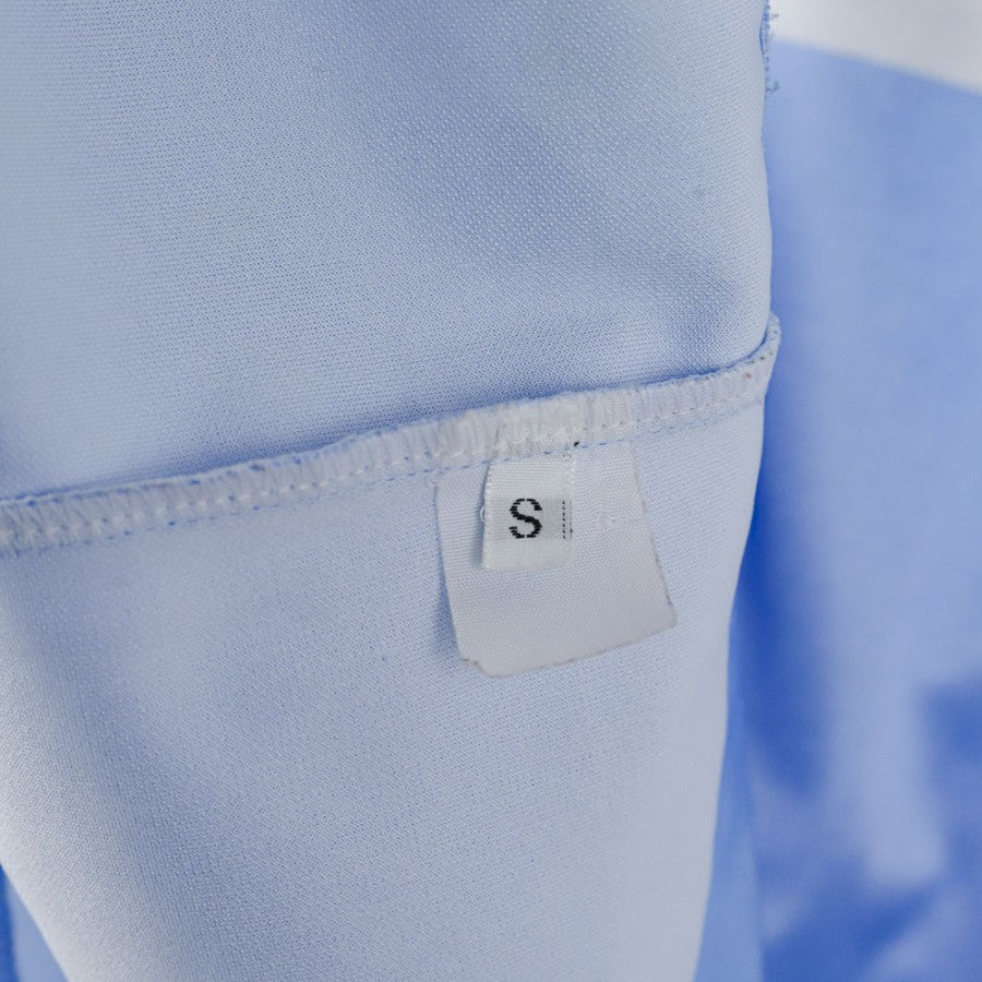 Maglia ufficiale Home del Napoli realizzata da Ennerre per la stagione 1990/1991. La maglia è caratterizzata da un design iconico con il tradizionale azzurro Napoli, arricchito da una fascia bianca che attraversa il petto. Presenta il logo del Napoli cucito sul petto, insieme al marchio Ennerre e al celebre sponsor commerciale Mars. Sul lato sinistro campeggia lo scudetto tricolore, simbolo del trionfo della stagione precedente. Il colletto a polo e la scollatura a "V" conferiscono alla maglia un tocco classico. La taglia riportata è "S". Sul retro sono presenti tracce di un numero precedentmente applicato.