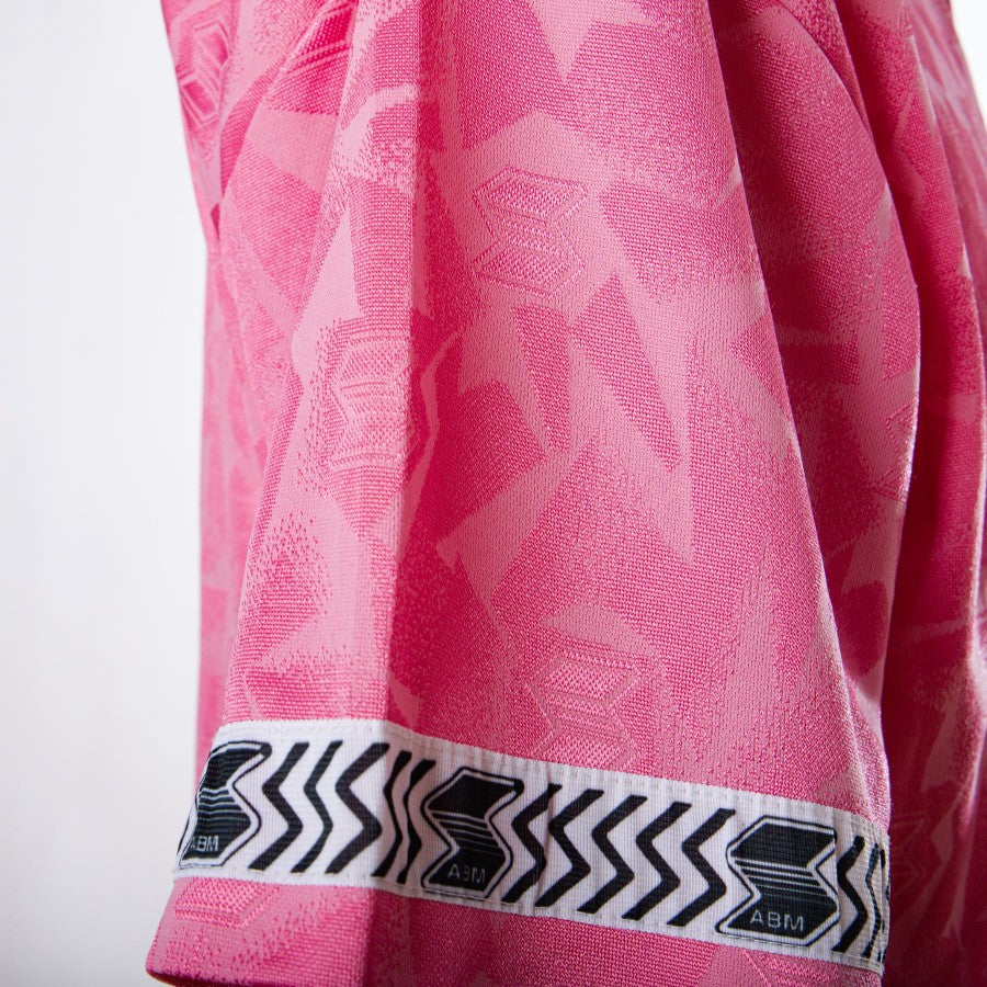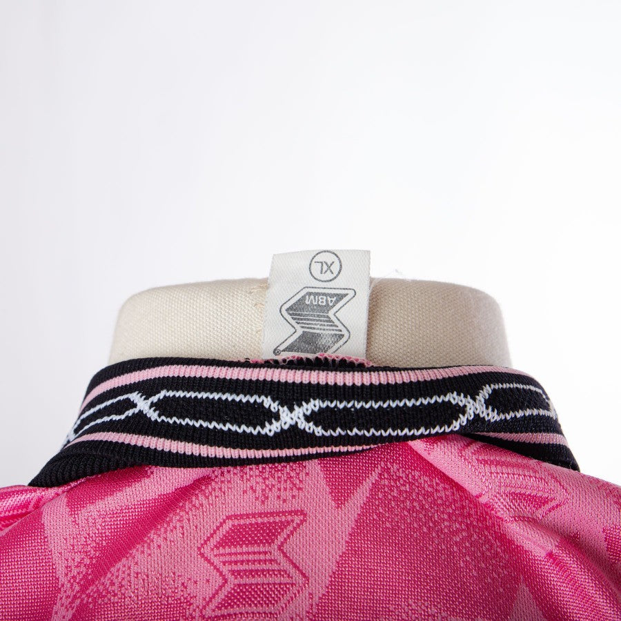 Modello home della stagione 1994/1995 di colore rosa con colletto a polo nero e scollo con bottone. Sulle maniche sono presenti due bande con i loghi dello sposnor tecnico. Lato cuore è applicata la patch della squadra in flock e sulla destra il logo ABM. Stampato sul retro il nuemero 9 in sublimatica.
