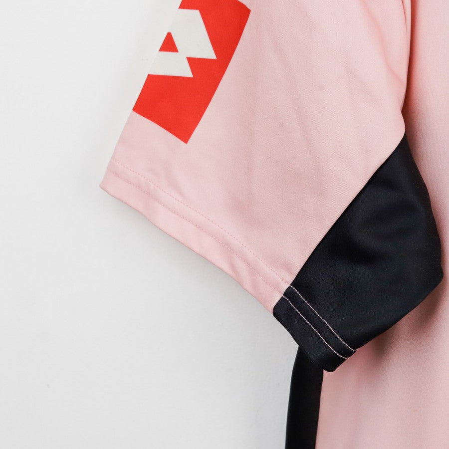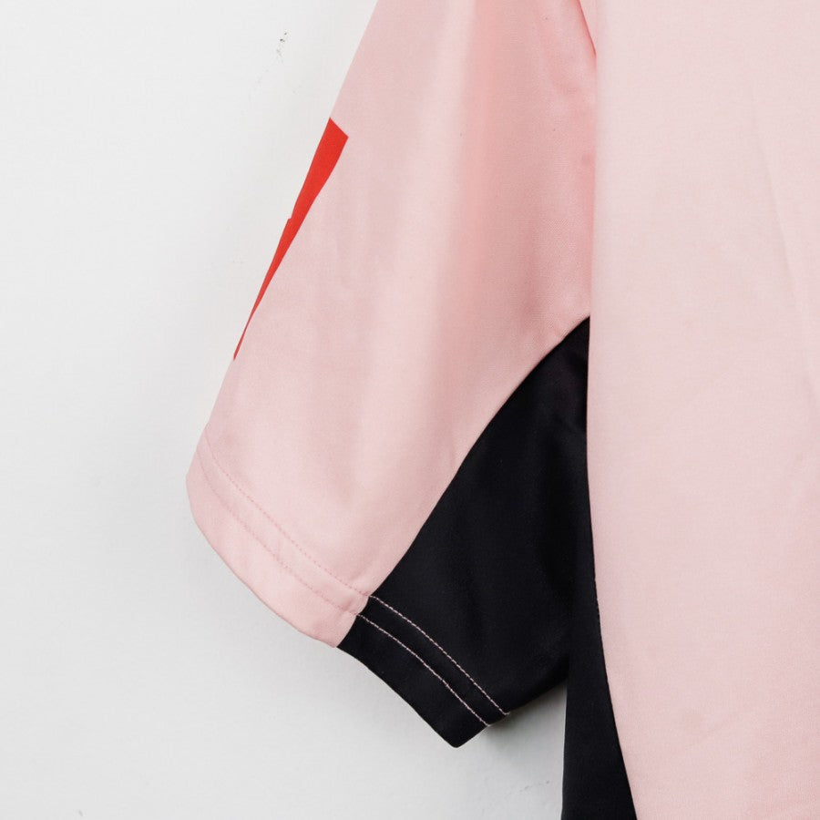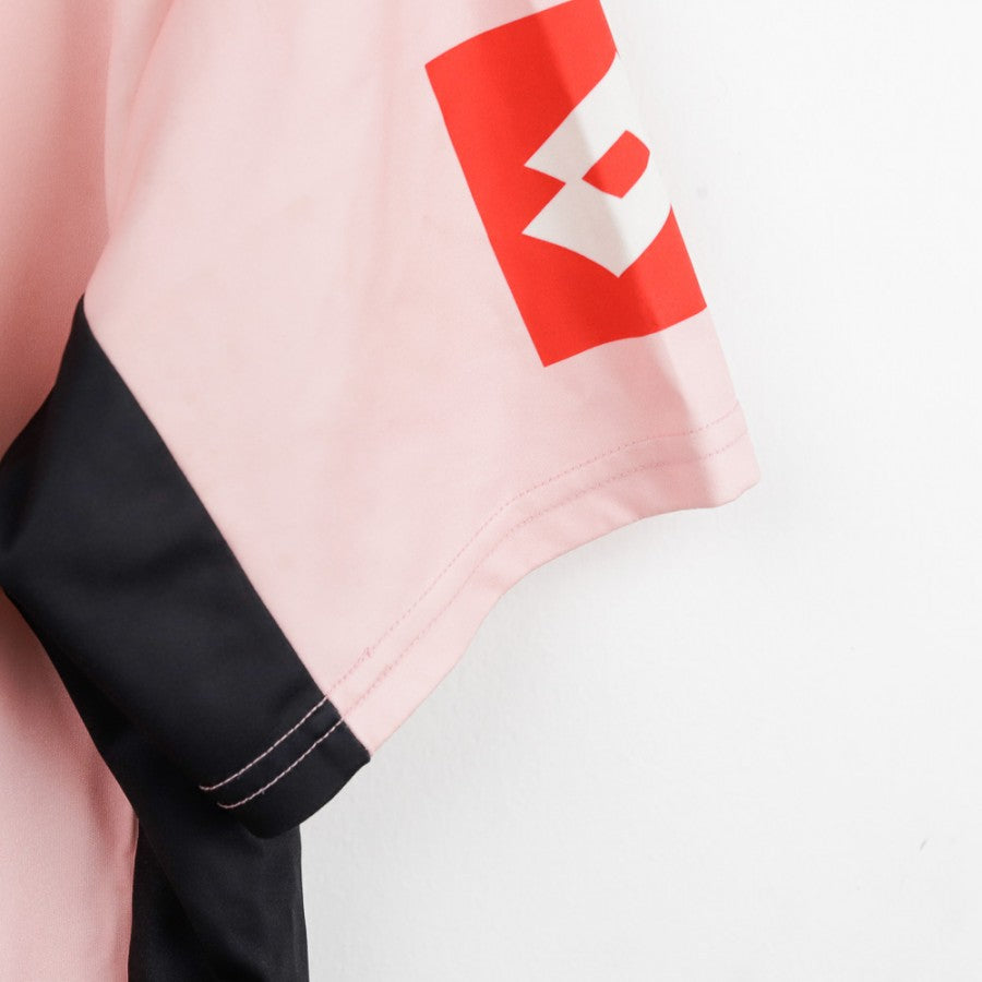 Maglia Home del Palermo della stagione 2004/2005 realizzata da Lotto. Lo storico rosa del club siciliano è accompagnato da inserti neri laterali e dettagli in nero anche sul colletto. Sulla parte frontale sono presenti il logo Lotto come sponsor tecnico e i marchi +39 e Provincia di Palermo come sponsor commerciali. Il numero 9 e il nome Toni sono applicati sul retro in nero. Taglia 50.