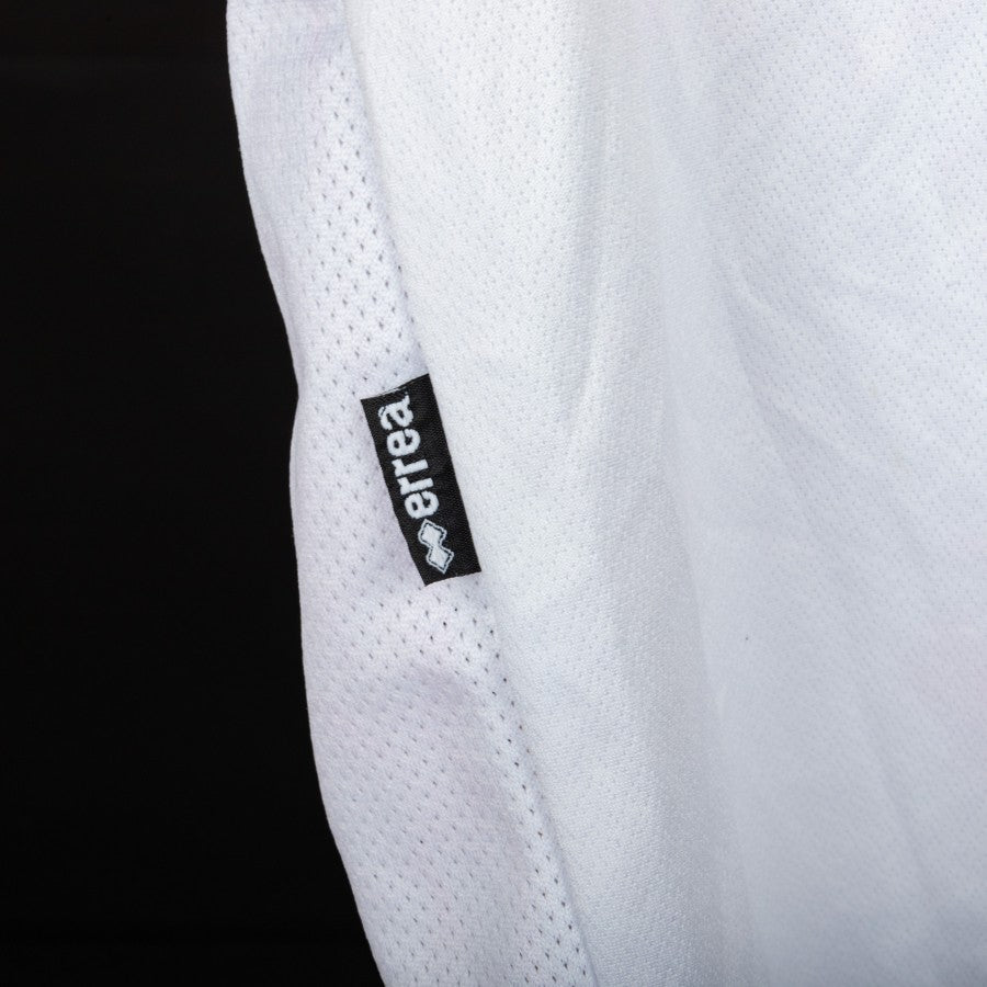 Modello di colore bianco con inserti in nero, stemma lato cuore e logo Errea sulla destra. Al centro sponsor commerciale "Il Granchio" e Kome. Toppa Serie A sulla manica destra.