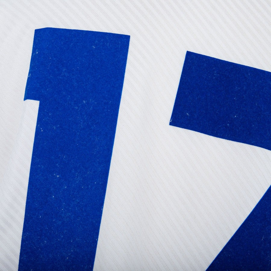 Sul retro, in vellutino e in colore blu, si trova un grande numero 17.