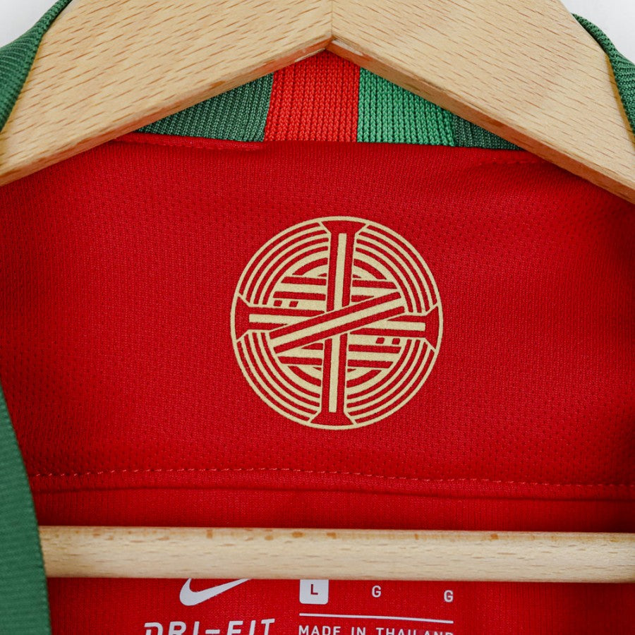 Di colore rosso con dettagli verdi, presenta lo stemma della nazionale sul lato cuore e il logo dello sponsor tecnico Nike.