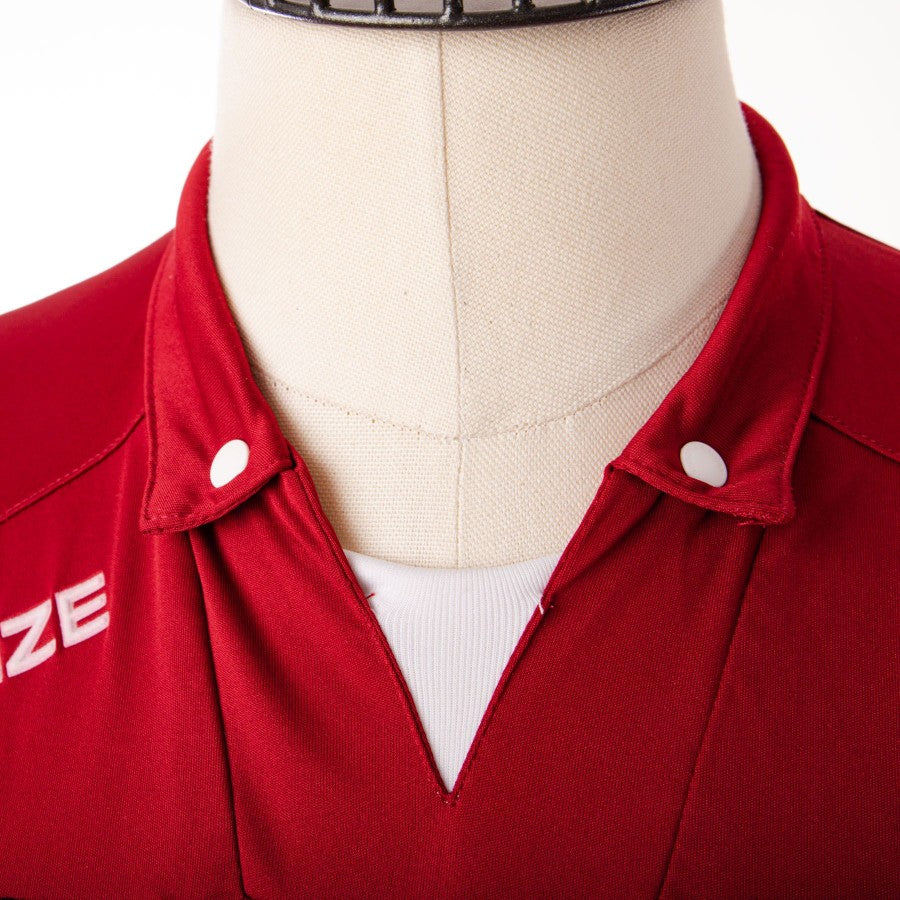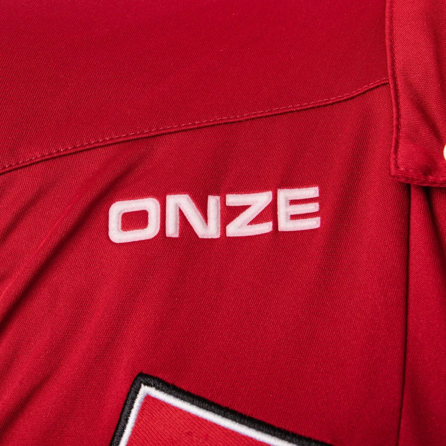 La maglia, prodotta da Onze, è di colore rosso e a manica corta. Il colletto a polo porta due bottoncini a pressione. Sulla parte frontale è ricamata la patch Reggina sulla destra ed il logo della Regione Calabria sulla sinistra. Al centro, applicato in flock bianco, lo sposnor commerciale Gicos. Numero 10 in plastica leggera sul retro.
