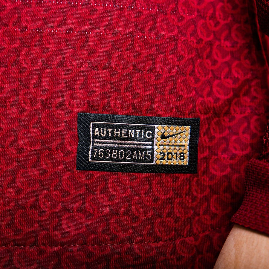 Maglia da gara Home della Roma stagione 2018/2019 - fornitura squadra - del centrocampista e difensore Alessandro Florenzi. Sul fronte è applicata la patch del logo Roma sul lato cuore ed è stampato sul lato destro il logo Nike. Al centro è applicato il logo dello sponsor commerciale Qatar Airways mentre sul retro sono stampati lettering FLORENZI e numero 24, oltre al logo del secondo sponsor Hyundai. Sulla manica destra c'è la patch Serie A Tim. Presente anche l'etichetta di autenticità "Authentic". Presente all'interno l'etichetta di produzione termosaldata.