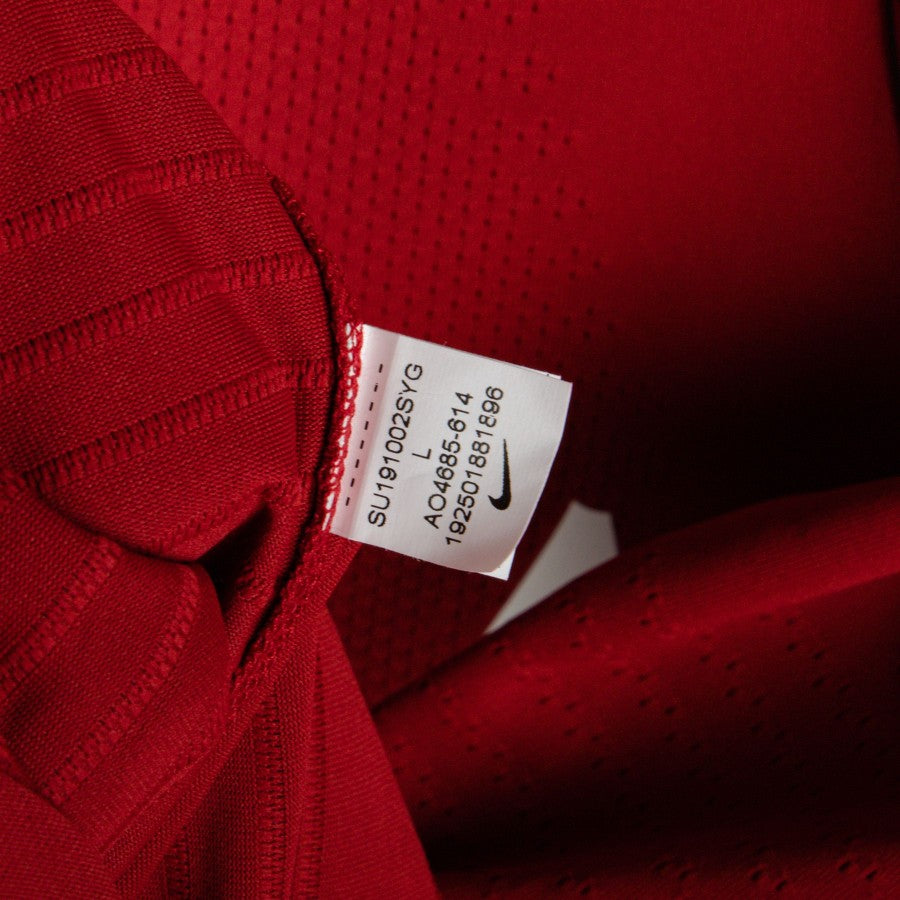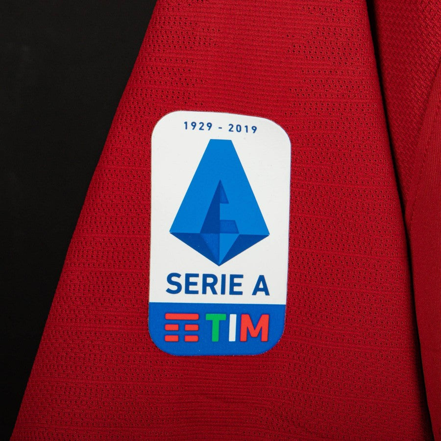 Modello di colore rosso con motivi a saetta sul colletto sulle maniche. Sulla sinistra stemma squadra e sulla destra logo Nike. Sotto troviamo lo sponsor commerciale Qatar Airways. Sulla manica la Toppa Serie A Tim.
