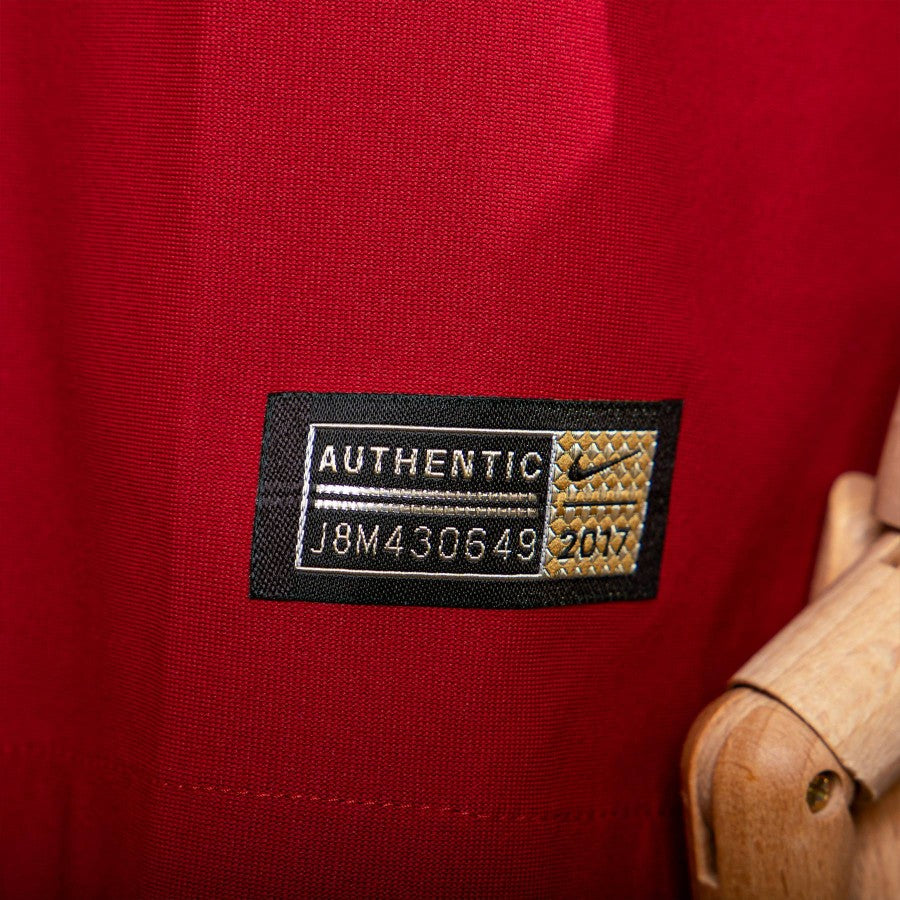 Maglia da gara Home della Roma stagione 2017/2018 del centrocampista Diego Perotti. Sul fronte è applicato il logo del Crotone sul lato cuore ed è stampato sul lato destro il logo Nike. Nel collo è stampata la lettering ROMA SIAMO NOI. Sul retro sono stampati lettering PEROTTI e numero 8, oltre all'autografo a penna. Sulla manica destra c'è la patch Serie A Tim. Presente sul fondo l'etichetta AUTHENTIC.