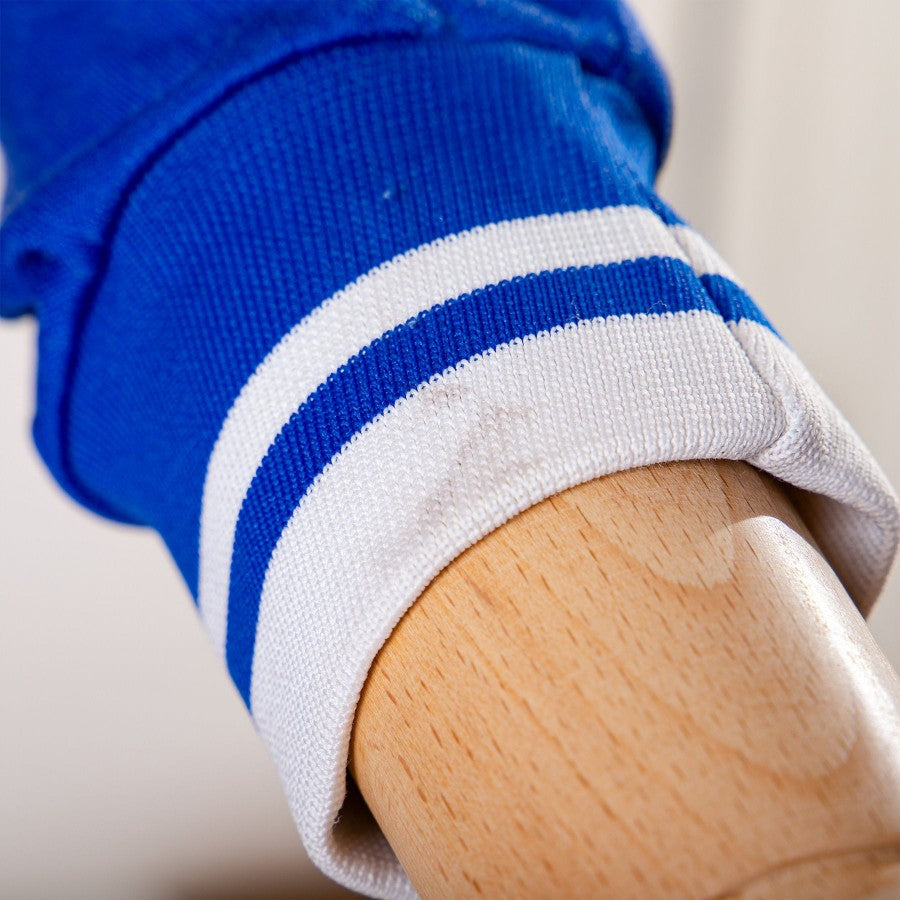 Maglia home schalke 04 della stagione calcistica 1978/1979. Modello di colore blu con inserti bianchi, manica lunga e colletto a polo. Sul fronte troviamo applicato il logo dello sponsor tecnico Erima, mentre al centro, applicata in vellutino, la scritta Schelke 04.