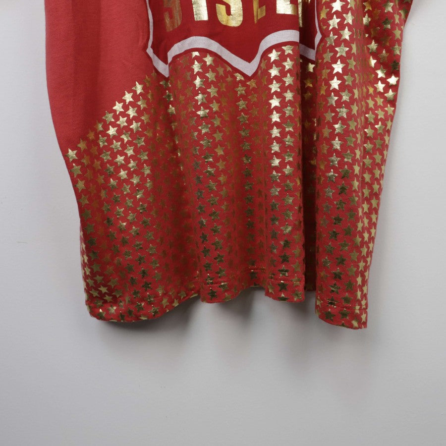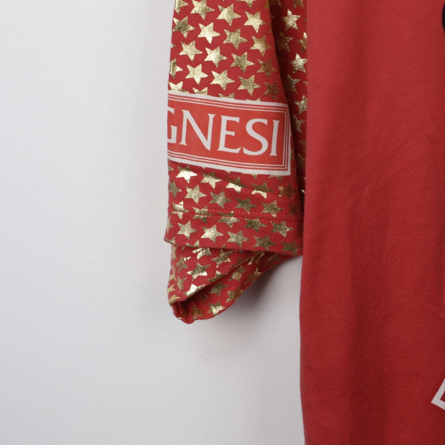 Maglia ufficiale della Sisley Treviso Volley, stagione 1993/1994, prodotta dallo sponsor tecnico Lotto. La divisa è di colore rosso con dettagli dorati e neri, caratterizzata da una fantasia di stelle dorate sulle maniche e nella parte inferiore. Sul petto spicca il logo della Sisley e il numero 1, mentre sul retro sono presenti il nome Gardini e il numero in grande formato. Questa maglia rappresenta un'epoca d'oro della Sisley Treviso, squadra simbolo della pallavolo italiana degli anni ‘90.
