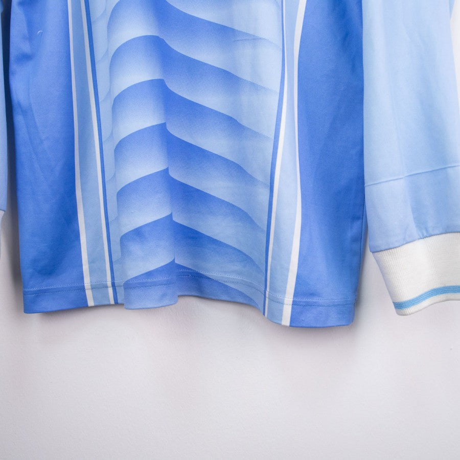 Un autentico pezzo vintage a maniche lunghe con il numero 9 Beghetto, arricchito dalla patch ufficiale della Serie A e con il logo dello sponsor Segafredo.