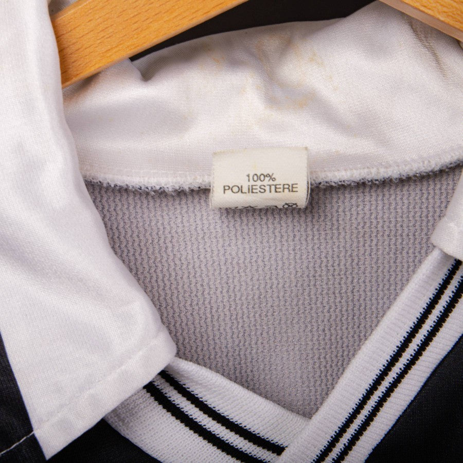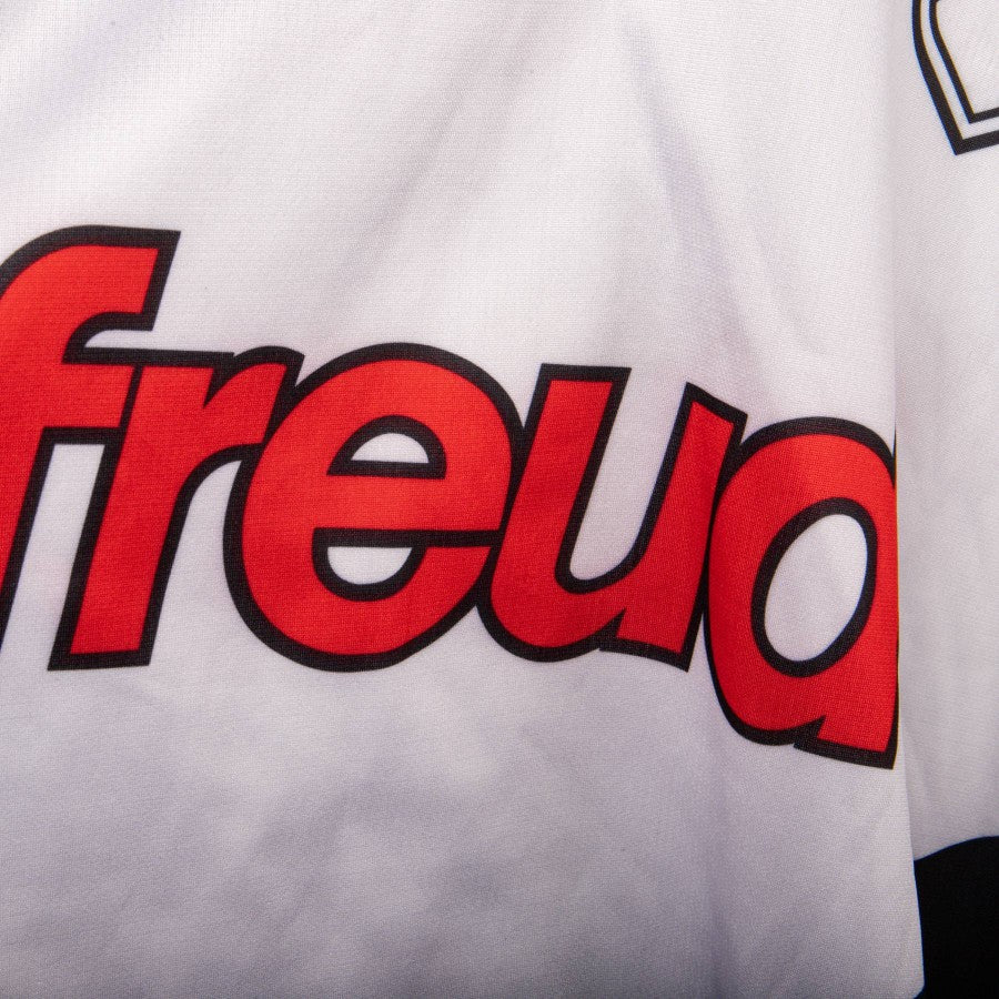 Sponsor ABM applicato e logo del Club in sublimatico in nero lato cuore. Taglia XL presente nel colletto. Sponsor Freud in sublimatico di colore rosso nella parte centrale.