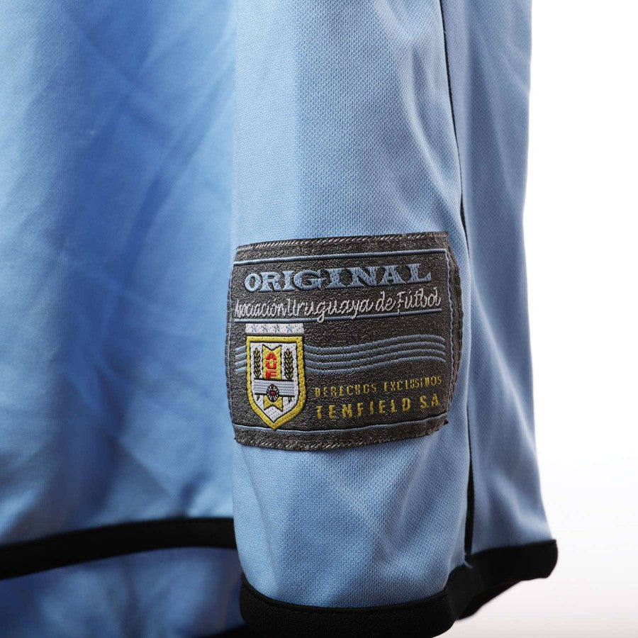Maglia home della nazionale Uruguaina prodotta per la squadra per le qualificazioni del mondiale in Korea e Giappone. Maglia appartenuta al calciatore Guigou che nell'occasione del match indossava il numero 7. Logo della Nazionale cucito al centro e bandiera dell'Uruguay cucita sulla manica destra.