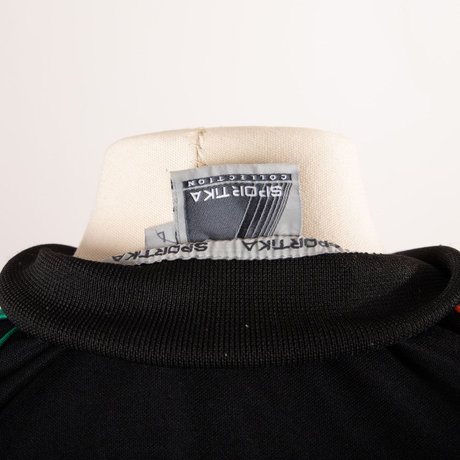 Modello a manica corta con colletto a polo. Colore nero con dettagli verdi e arancio. Logo dello sponsor tecnico Sportika, applicato in flock e, patch della squadra cucita lato cuore.