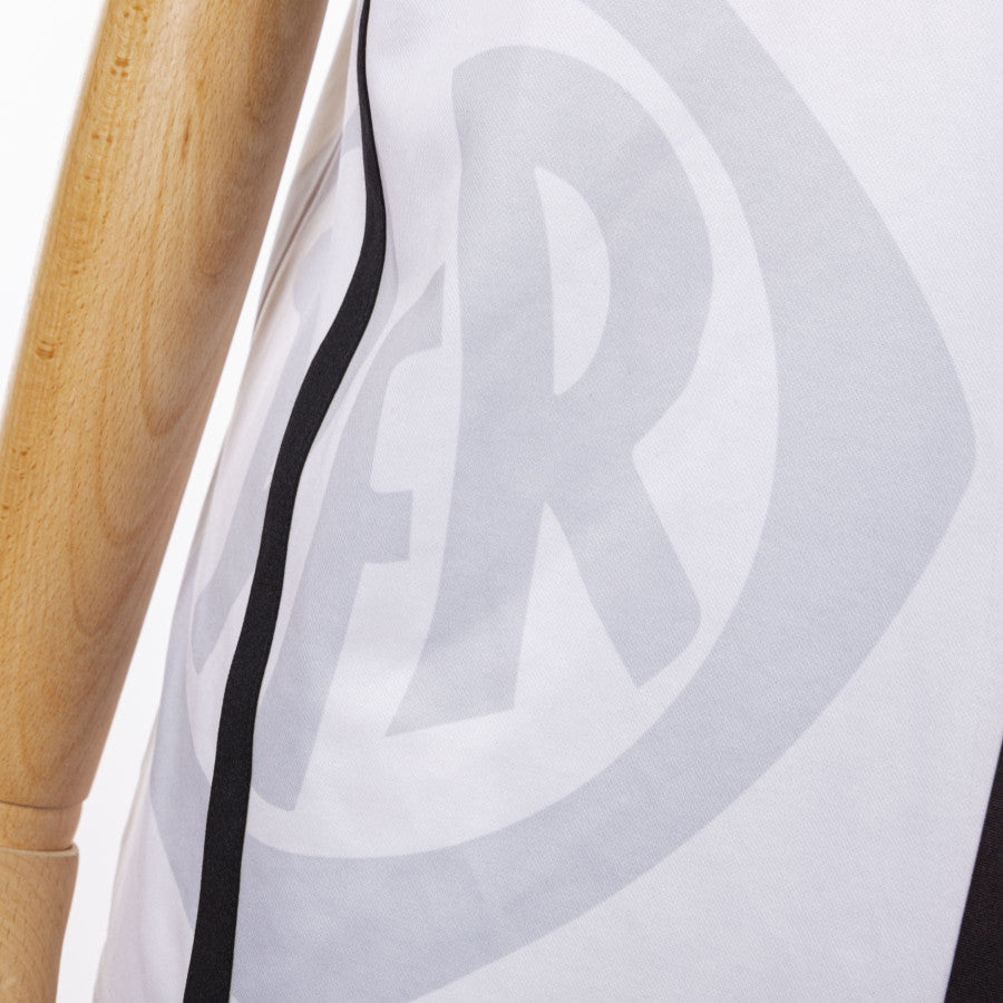 La casacca del club tedesco è per metà in bianco e l'altra metà in nero, con le maniche ed il colletto alla coreana bordati in oro, colore che si intravede anche dallo scollo a V. Sul lato dinistro è cucito lo stemma della squadra di calcio , mentre sul lato destro è leggibile il marchio dello sponsor tecnico Saller ed al centro quello dello sponsor commerciale Prowin. Sulle maniche è richiamato il logo Saller in oro, mentre sul braccio destro è applicata la toppa della 3. Liga tedesca. Sul retro, in bianco, si leggono il lettering del team sportivo e la personalizzazione col numero 18 Muller.