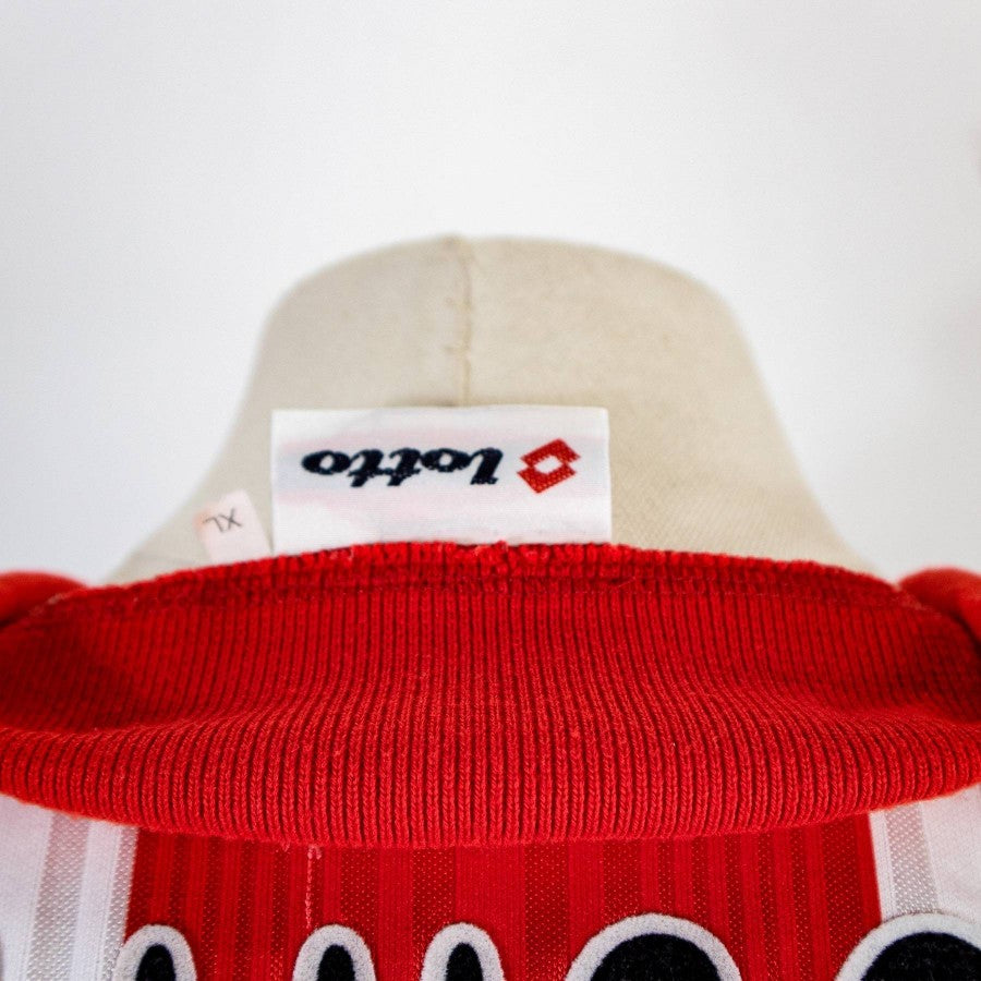 La maglia si presenta in ottime condizioni, il tessuto è in buone condizioni e presenta le caratteristiche originarie. E' presente etichetta della taglia XL ed etichetta Lotto.