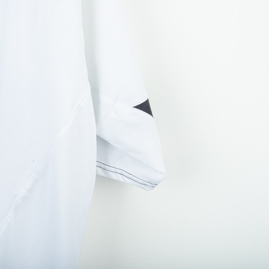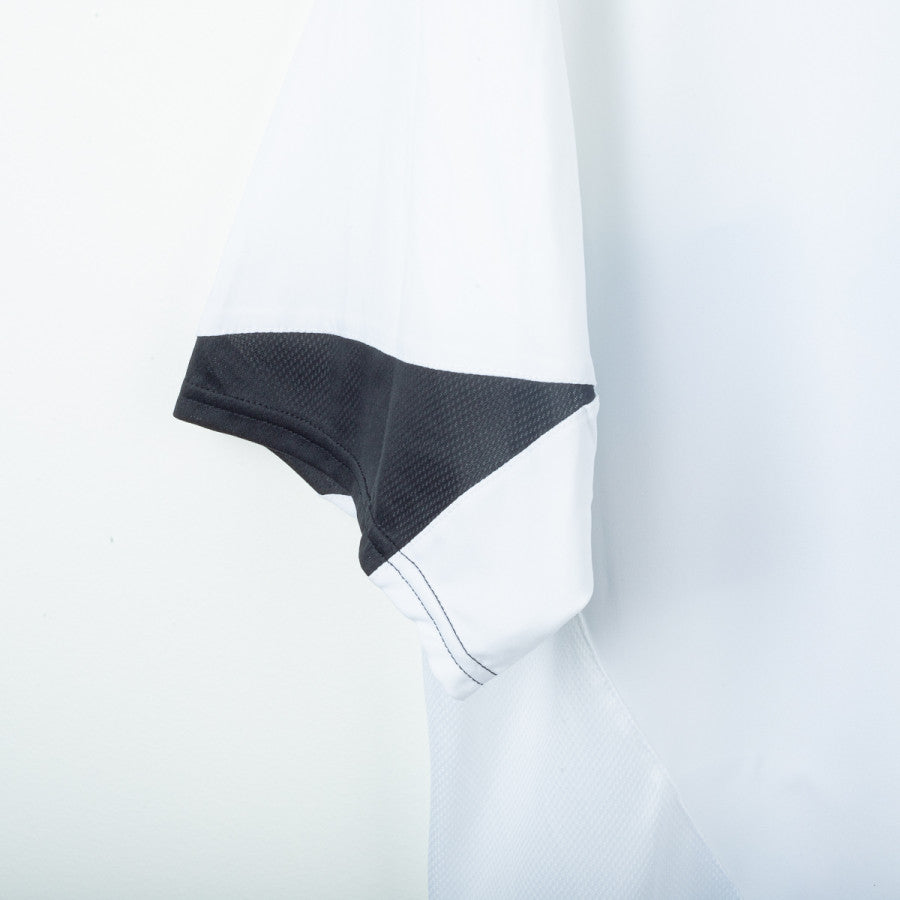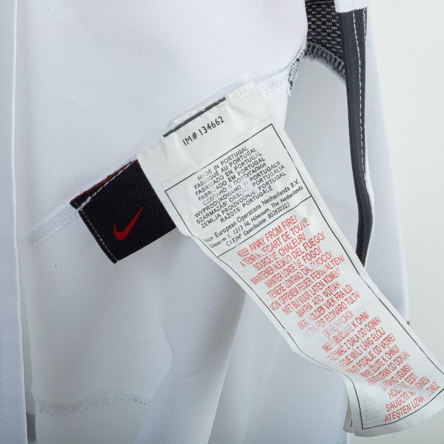 Maglia away dell'Inter utilizzata nella stagione 2005/2006, prodotta da Nike. Colore bianco con fascia orizzontale centrale blu e nera, colletto e inserti antracite. Logo Nike sul petto destro, stemma dell'Inter lato cuore con stella dorata sovrastante. Sponsor Pirelli applicato in stampa gialla e blu. Nome Figo e numero 7 applicati sul retro. Tessuto tecnico Dri-Fit in poliestere leggero, con pannelli in mesh laterali per una migliore traspirazione. Vestibilità regolare. Taglia XL.