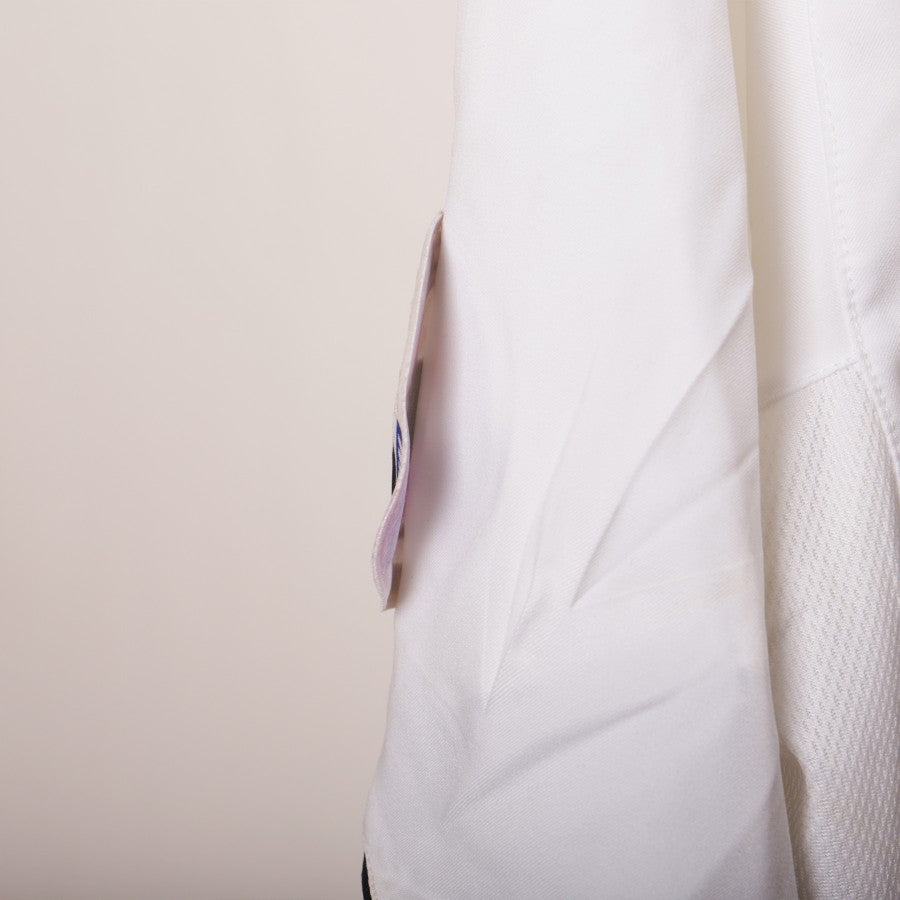 Modello away di colore bianco e dettagli blu. Sul fronte è cucita lato cuore la coccarda tricolore, mentre la patch dell'Inter è ricamata al centro.