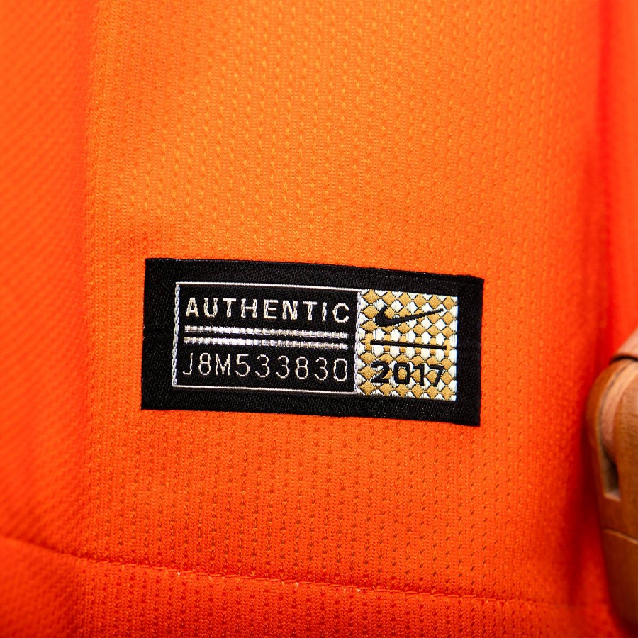 Maglia da gara da portiere dell'Inter stagione 2017/2018 del secondo portiere Daniele Padelli. Sul fronte è applicata la patch del logo Inter sul lato cuore ed è applicato in gommina sul lato destro il logo Nike. Al centro è applicato il logo dello sponsor commerciale Pirelli mentre sul retro sono stampati lettering PADELLI e numero 27, oltre al logo del secondo sponsor Driver Center. Sulla manica destra c'è la patch Serie A Tim. Presente anche l'etichetta di autenticità "Authentic". Presente all'interno l'etichetta di produzione termosaldata.