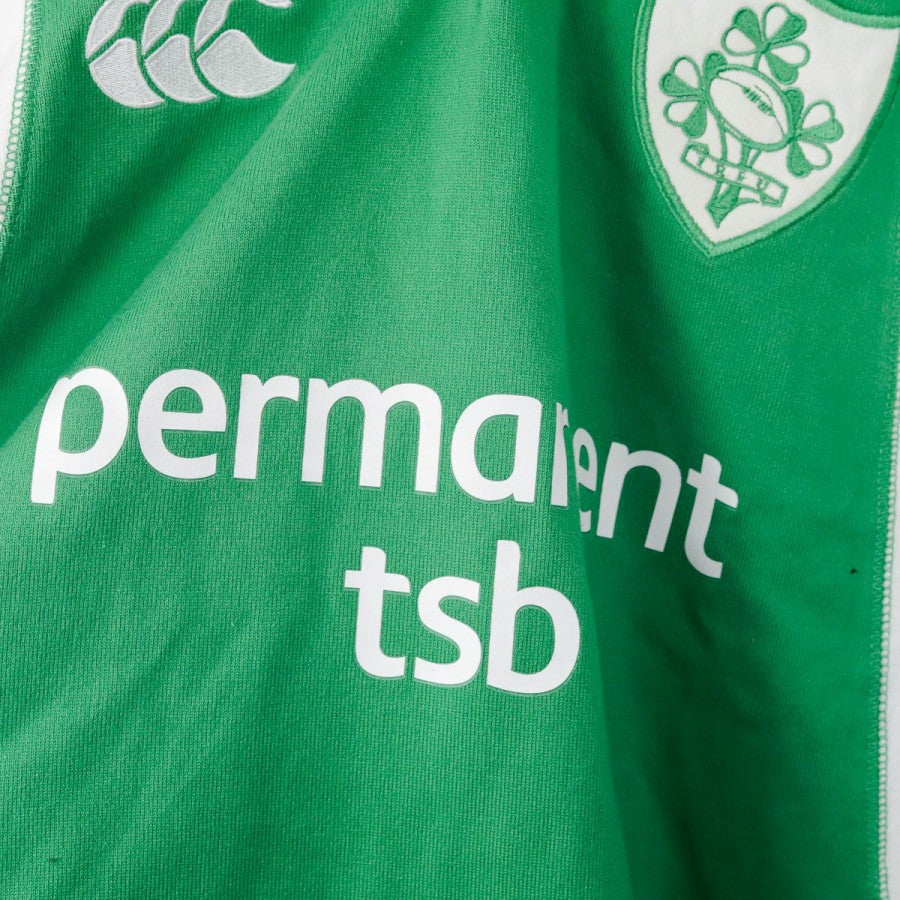 Maglia ufficiale della Nazionale di rugby dell'Irlanda per la stagione 2005/2006, realizzata da Canterbury. Il design classico presenta il tradizionale colore verde con inserti bianchi lungo i lati e sulle maniche. Il colletto è bianco con chiusura a due bottoni, conferendo un aspetto rétro. Sul petto si trovano il logo Canterbury e lo stemma della nazionale irlandese, mentre al centro è presente il logo dello sponsor commerciale Permanent TSB.