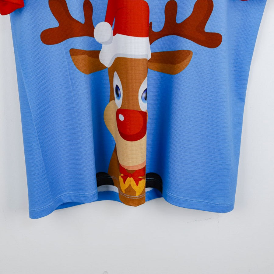 La maglia speciale del Napoli per la stagione 2022/2023, prodotta dallo sponsor tecnico EA7 Emporio Armani, presenta un design natalizio unico. Di colore azzurro con dettagli rossi, questa edizione limitata mostra un simpatico disegno di una renna sul fronte, insieme agli sponsor commerciali Lete e MSC. Il logo del club è cucito sul petto accanto al marchio EA7, mentre lo stemma SSCN è visibile sul retro del colletto.