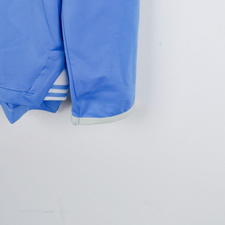 La maglia ufficiale del Napoli per la stagione 2012/2013, prodotta dallo sponsor tecnico Macron, rappresenta uno dei design più iconici del club partenopeo. Realizzata in un classico azzurro Napoli, è caratterizzata da un colletto a V con dettagli a righe bianche e da inserti in tessuto traspirante sui lati per garantire maggiore comfort e ventilazione.