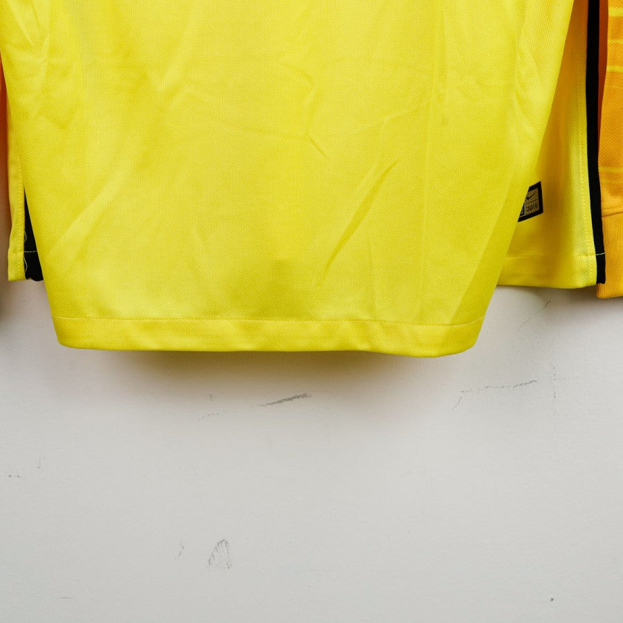 Maglia da portiere ufficiale dell'Inter stagione 2015/2016 prodotta da Nike. Il modello a manica lunga presenta una base gialla con sfumature arancioni sulle maniche. È presente il logo Nike sul petto, insieme al logo della squadra dell'Inter. Al centro della maglia si trova lo sponsor commerciale Pirelli. Sulla manica destra è presente la patch ufficiale della Serie A TIM. Sul retro è riportata la personalizzazione Handanovic 1. La taglia indicata è XL.