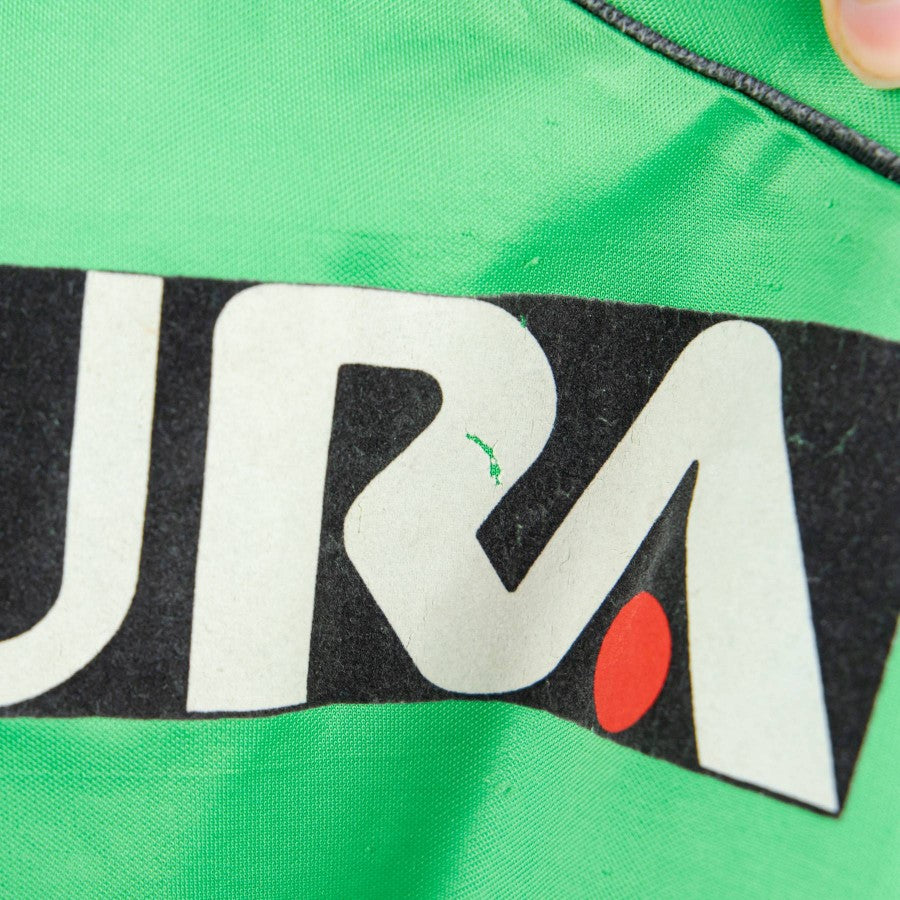 Maglia da portiere ufficiale dell'Inter per la stagione 1990/1991, realizzata dallo sponsor tecnico Uhlsport. La divisa presenta una base verde con inserti neri e dettagli grigio scuro su colletto e polsini. Lo sponsor commerciale Misura è stampato in grande al centro del petto. Sul lato sinistro si trova lo stemma dell'Inter con la stella, mentre sul lato destro campeggia il logo Uhlsport. Sul retro è stampato il numero 1. La maglia è a maniche lunghe, con imbottiture su gomiti e avambracci. Taglia non specificata.