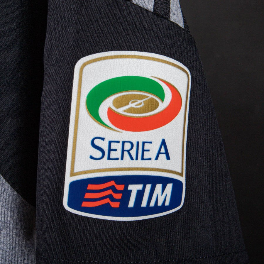Modello di colore nero e grigio con bande a tre strisce sulle spalle. Lato cuore stemma con le tre stelline, al centro lo scudetto e sulla destra logo Adidas ricamato in grigio con la Coccarda della Coppa Italia. Toppa Serie A sulla manica destra.