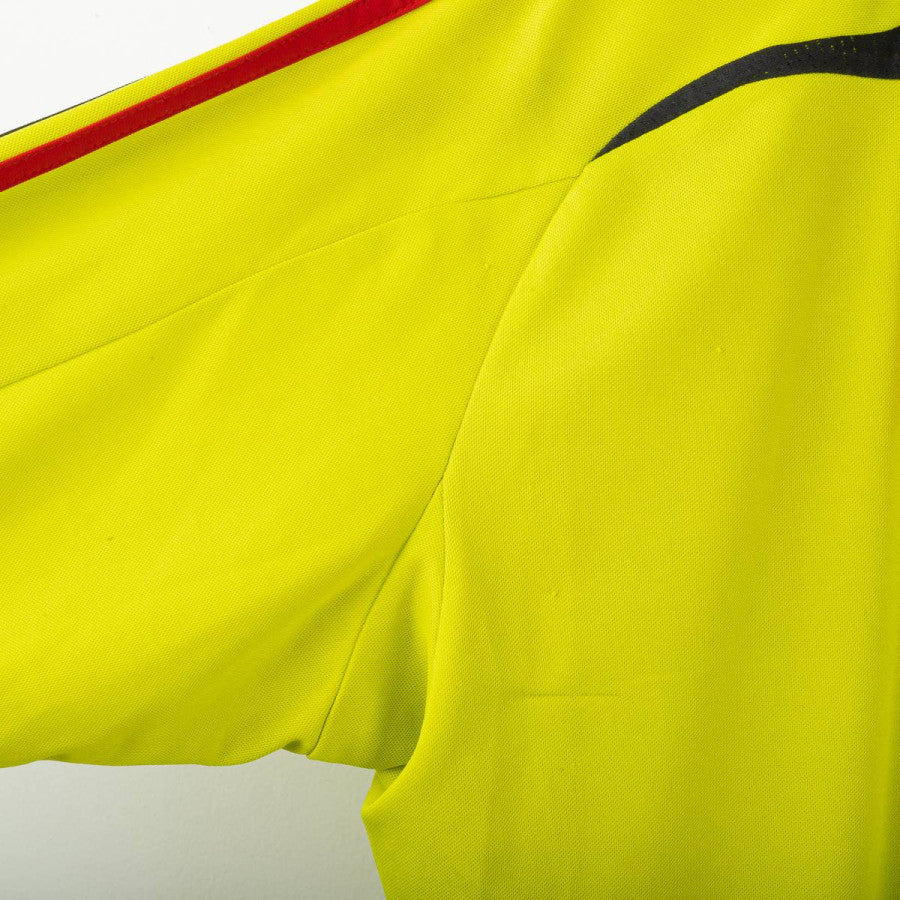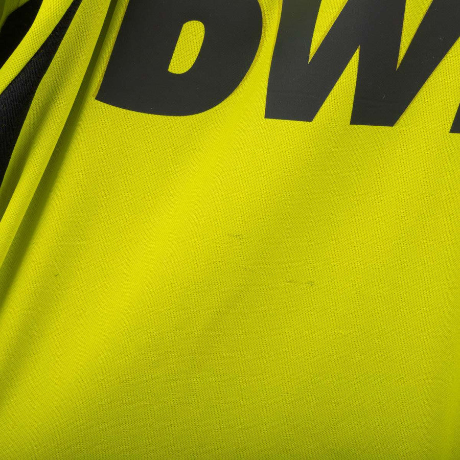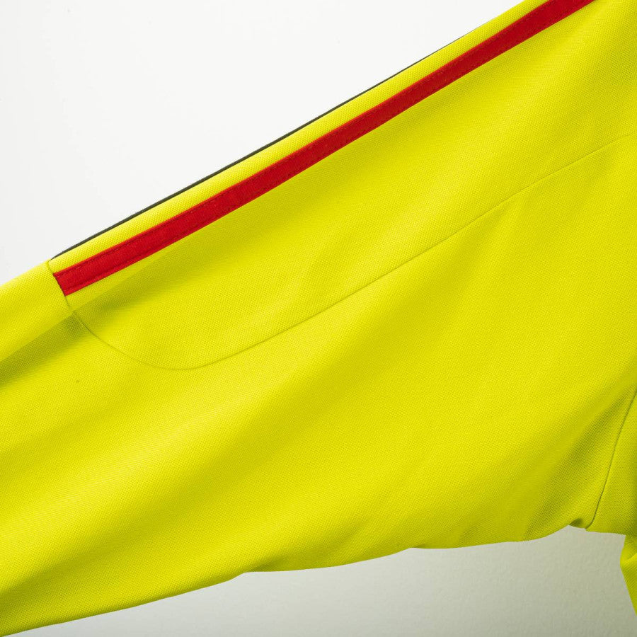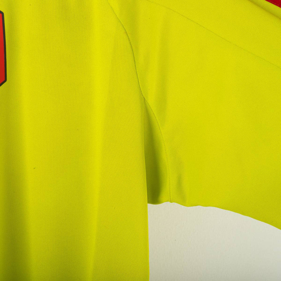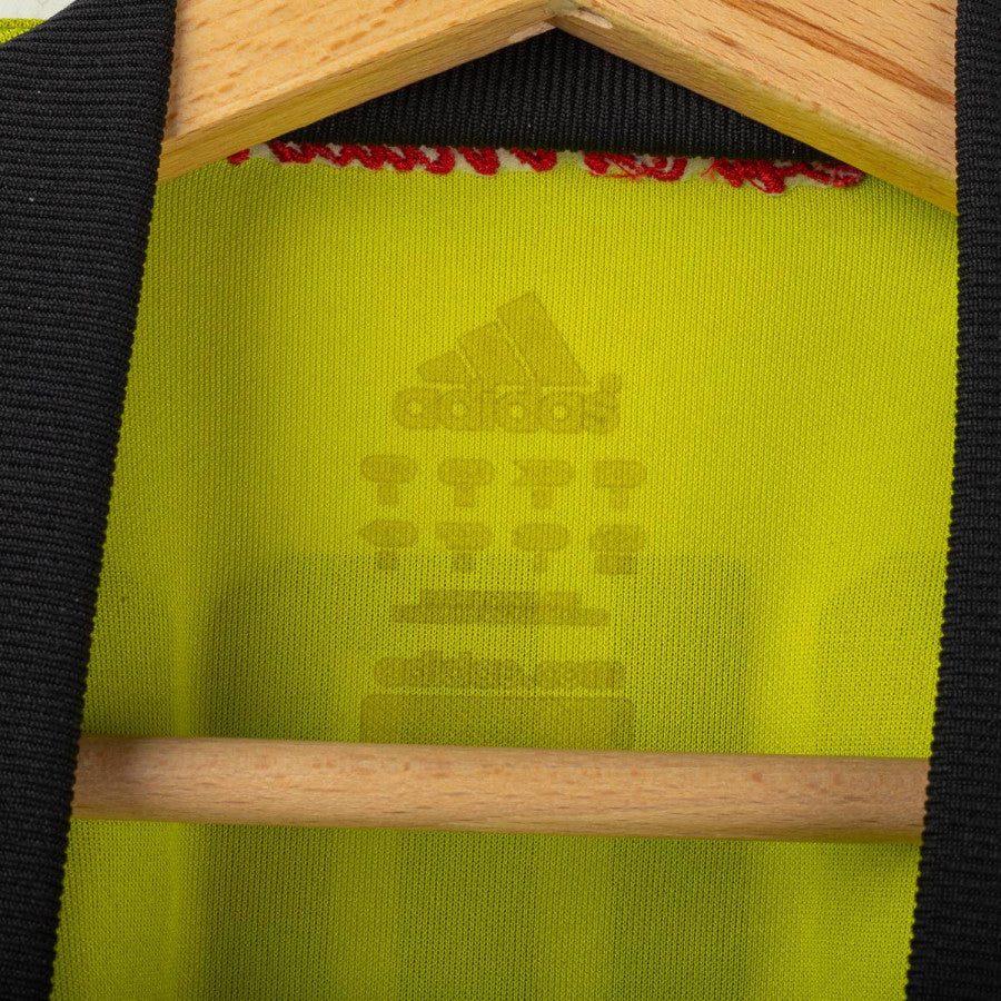 Maglia da portiere del Milan indossata da Dida nella stagione 2007/2008, prodotta da Adidas. Colore giallo fluo con dettagli neri e rossi sulle spalle. Logo Adidas ricamato al centro del petto, stemma AC Milan cucito lato cuore con stella dorata superiore. Sponsor Bwin in stampa gommata nera. Nome “DIDA” e numero 1 sul retro in stampa plastificata rossa. Scritta “A.C. Milan” ricamata in rosso sul retro del colletto. Maniche lunghe con polsini neri elasticizzati. Tecnologia ClimaCool per una traspirazione ottimale. Taglia L.