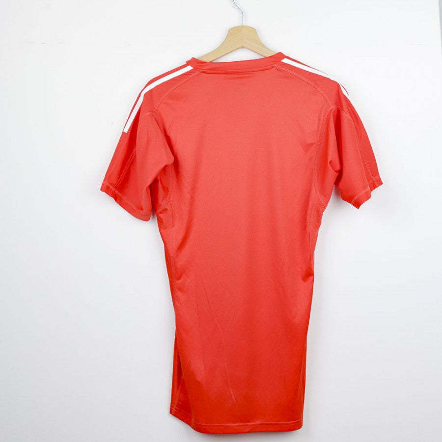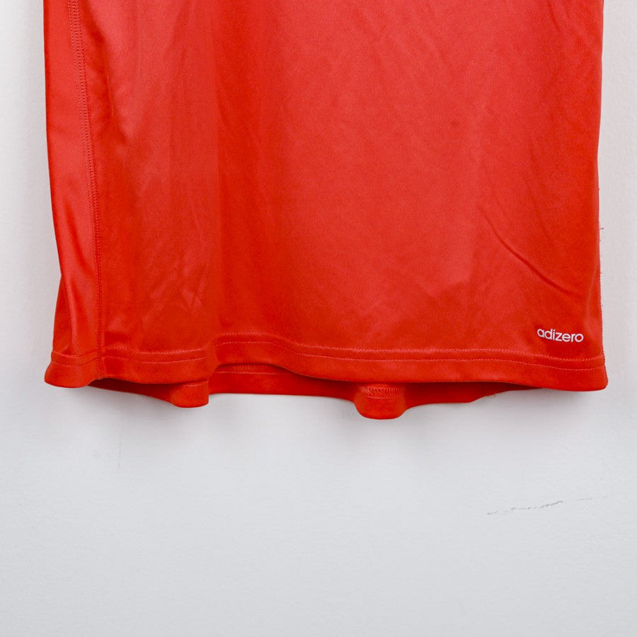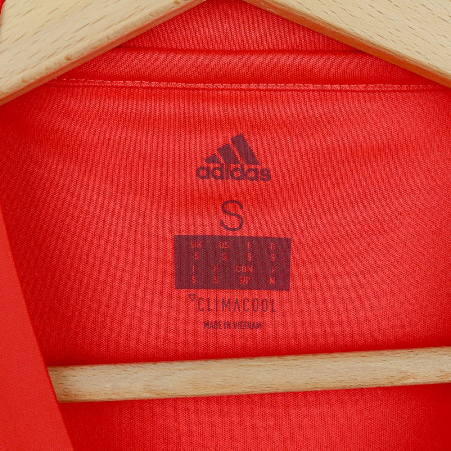 Maglia da portiere del Real Madrid realizzata dallo sponsor tecnico Adidas per la stagione 2017/2018. La maglia di colore rosso con inserti bianchi presenta lo stemma della squadra cucito, il logo dello sponsor tecnico adidas ricamato sul petto con le three striper che appaiono sulle spalle. Sponsor commerciale Fly Emirates. Taglia S.