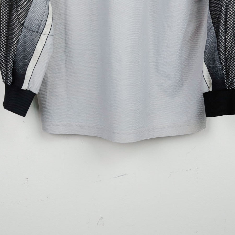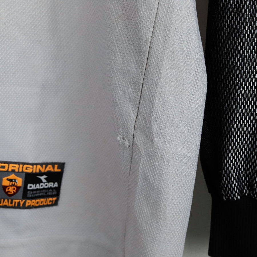 Maglia da portiere della Roma utilizzata nella stagione 1999/2000, prodotta dallo sponsor tecnico Diadora. Il design è caratterizzato da una base grigia con inserti neri e maniche in mesh traspirante. Presenti il logo Diadora cucito, lo sponsor INA Assitalia stampato e lo stemma della Roma applicato sul petto. Un capo d'abbigliamento iconico dell'epoca pre-Totti capitano, legato agli ultimi anni prima dell'avvento del terzo scudetto. Taglia M.
