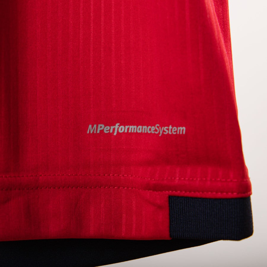 Manica destra con logo Macron e toppa Coppa Italia applicata.
