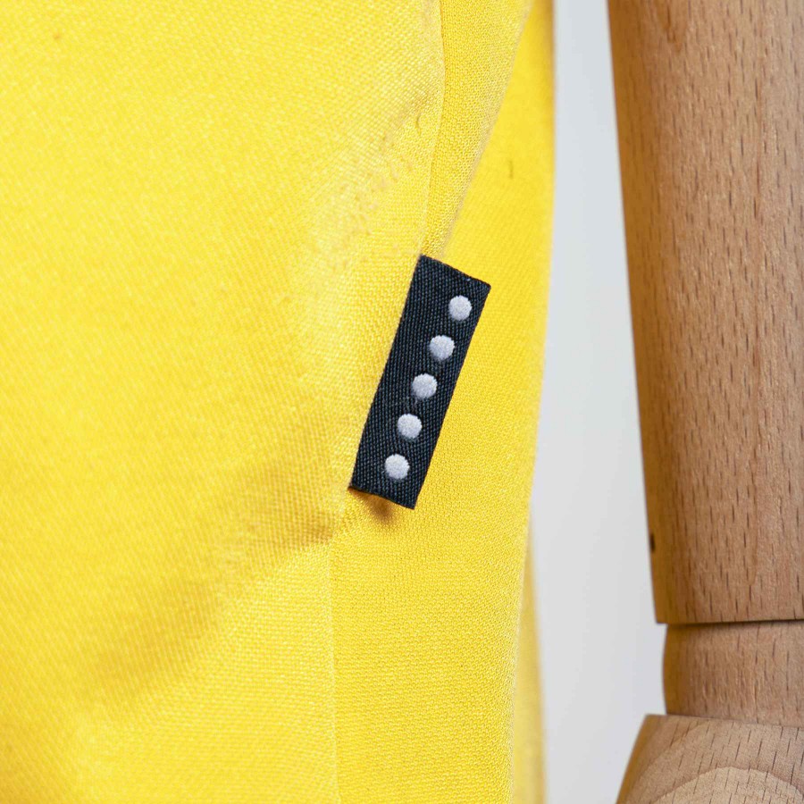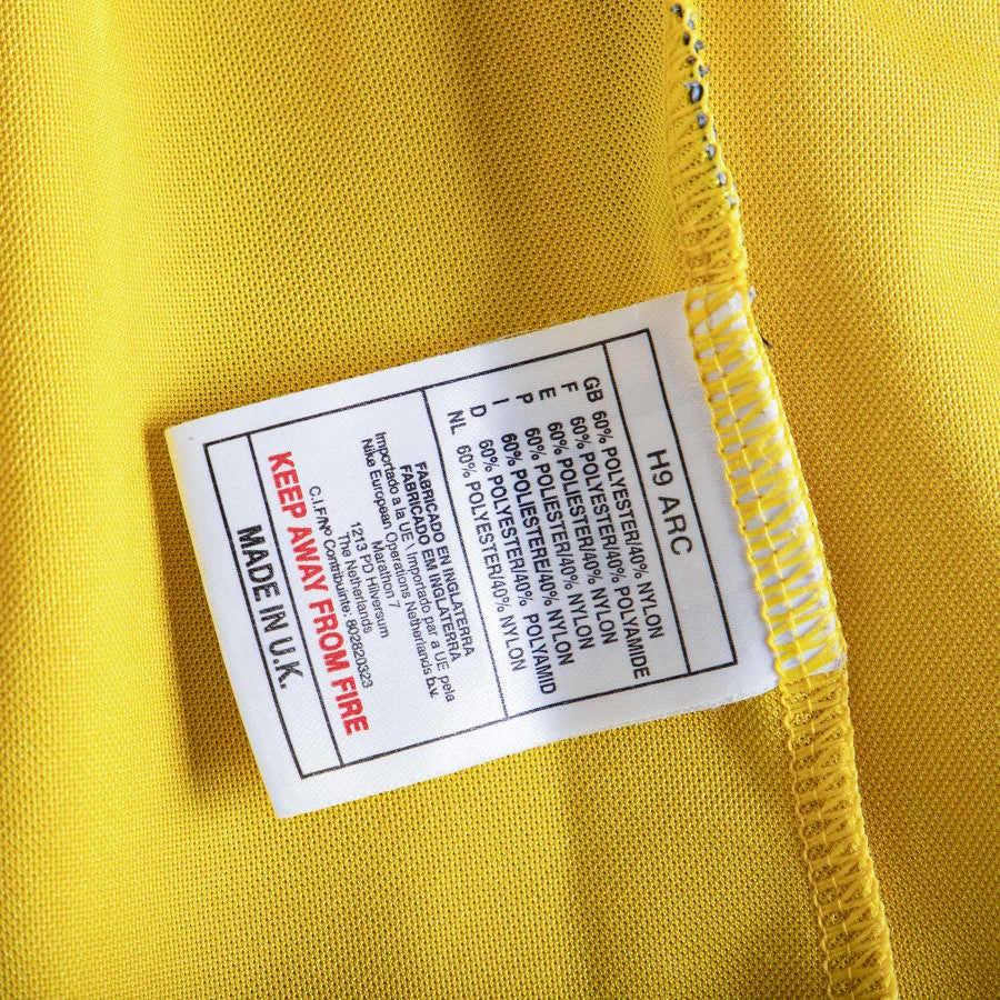 Maglia Away gialla dell'Inter a manica corta con collo a V. Sul fronte c'è il logo dello sponsor commerciale Pirelli in flock, mentre sul lato cuore è cucito il logo della squadra e sul lato destro è ricamato quello della Nike. Sul retro sono applicati numero 5 e lettering BLANC, leggermente consumata, in plastica leggera nera con bordo grigio.