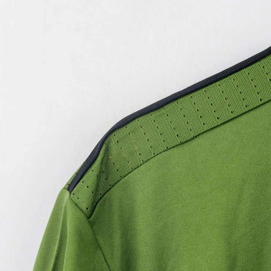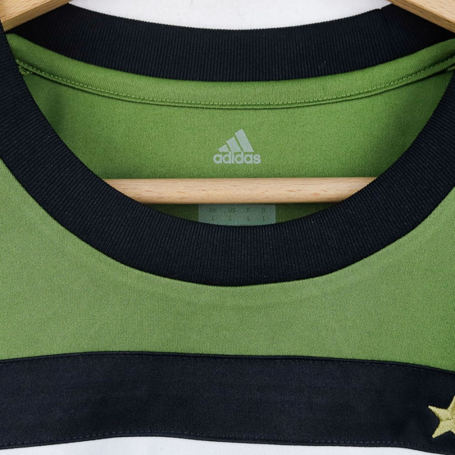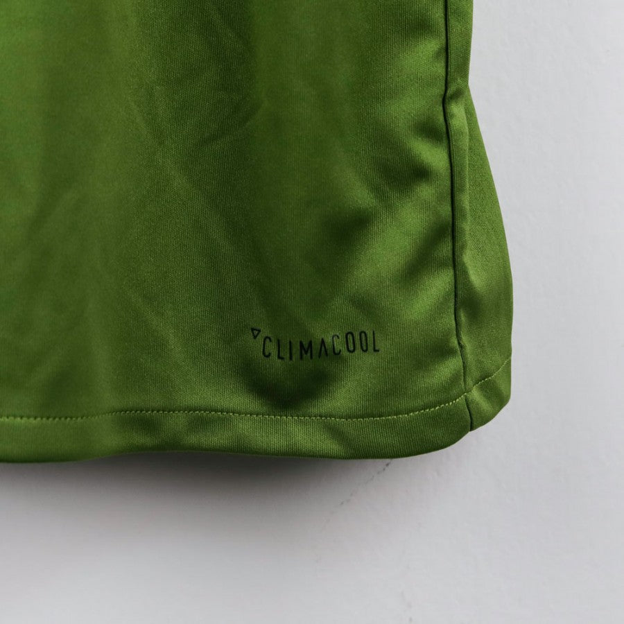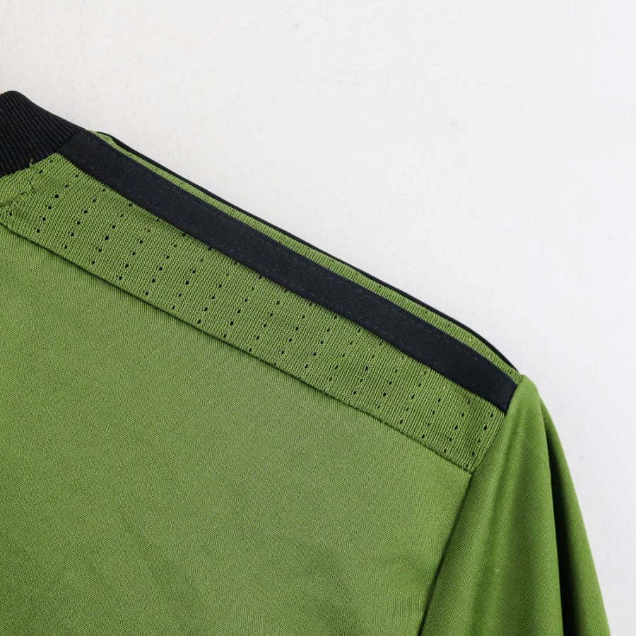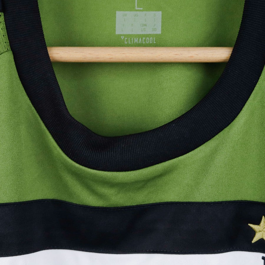Maglia third della Juventus per la stagione 2017/2018, realizzata da Adidas. Il design presenta un'insolita colorazione verde militare con dettagli neri e una banda bianca sul petto, dove spiccano il logo Adidas, lo stemma della Juventus con le tre stelle e lo scudetto tricolore. Lo sponsor Jeep è posizionato al centro della maglia. Tecnologia Climalite per un comfort ottimale durante il gioco. Taglia L.