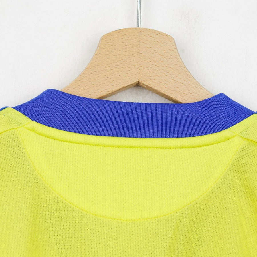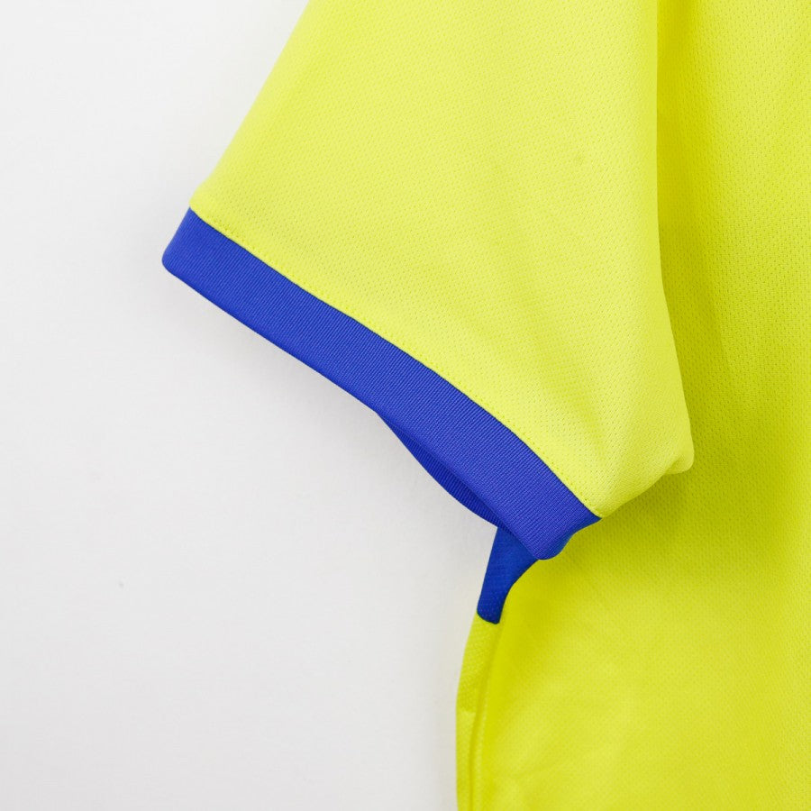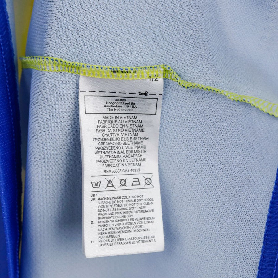 Maglia third della Juventus stagione 2021/2022 realizzata da Adidas. Lo sponsor tecnico Adidas è ben visibile sul petto, mentre il main sponsor Jeep 4xe campeggia centralmente nella parte frontale. Il design è caratterizzato da un accattivante pattern geometrico con una combinazione audace di giallo, blu e inserti bianchi, ispirato alle grafiche degli anni '90. Taglia L.