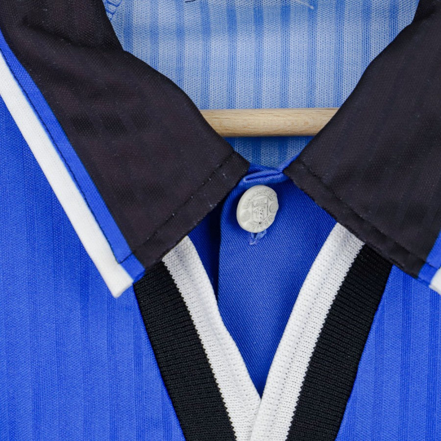 Al centro della maglia troviamo lo stemma della squadra cucito, al di sopra lo sponsor tecnico Umbro, al di sotto lo storico sponsor commerciale Sharp.