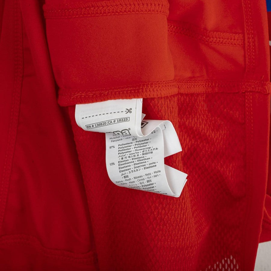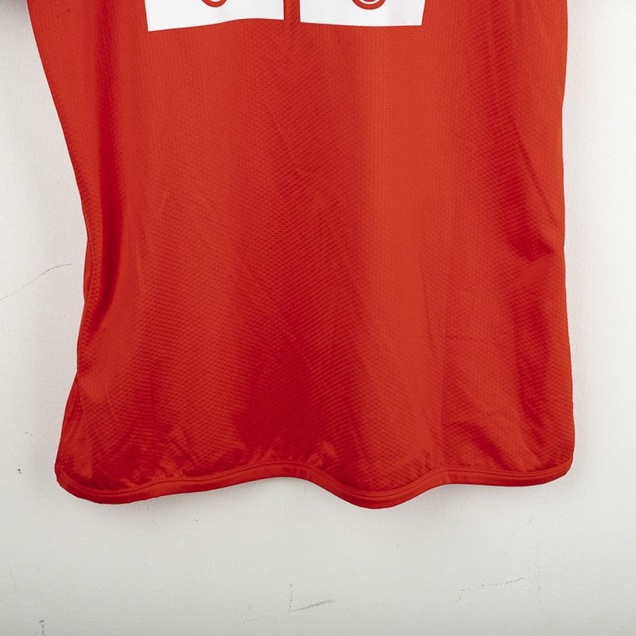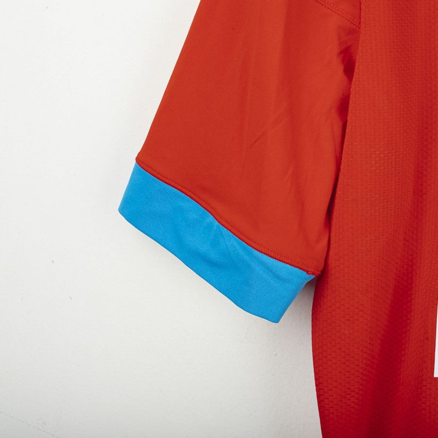 Maglia third del Napoli stagione 2015/2016, prodotta da Kappa, modello Kombat. Colore rosso con dettagli azzurri su colletto e bordo maniche. Sponsor tecnico Kappa applicato in stampa bianca sul petto e sulle maniche. Sponsor principali Lete e Garofalo applicati in stampa sublimatica al centro. Stemma SSC Napoli cucito lato cuore. Patch ufficiale Serie A TIM sulla manica destra. Retro con nome Maggio e numero 11 in stampa bianca. Vestibilità aderente tipica del modello Kombat. Taglia L. Maglia storica legata alla stagione con Maurizio Sarri, in cui Maggio fu una delle bandiere della squadra.
