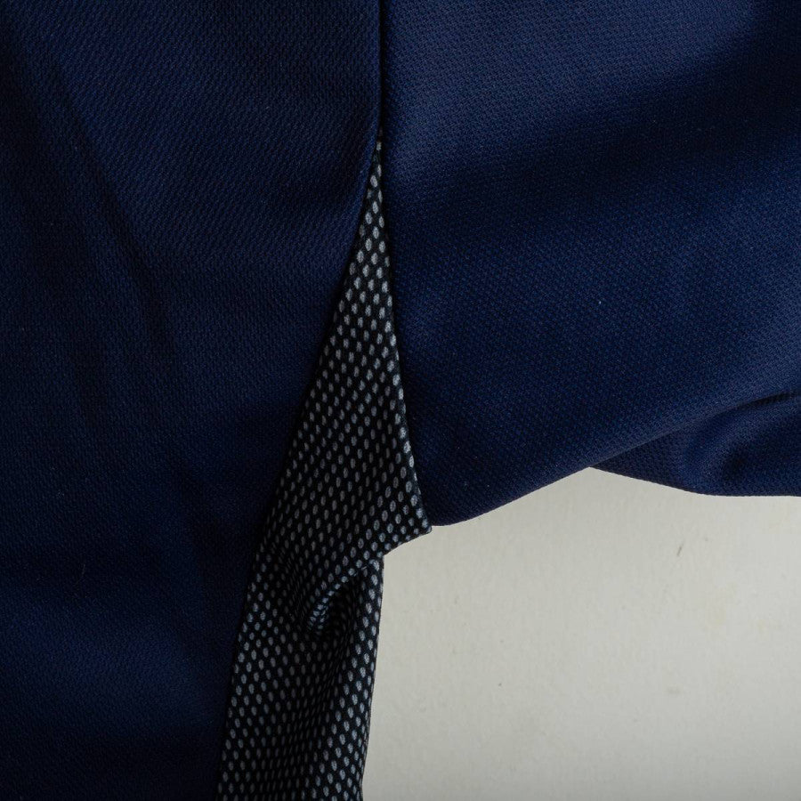 Maglia third del Parma stagione 2000/2001, prodotta da Champion. Colore blu con dettagli dorati e inserti grigi laterali. Sponsor tecnico Champion applicato in flock sul petto e ripetuto sulle maniche. Sponsor principale Parmalat stampato al centro. Stemma Parma A.C. cucito lato cuore. Retro con nome Cannavaro e numero 17 in oro con profilo azzurro. Vestibilità regolare. Taglia XL.