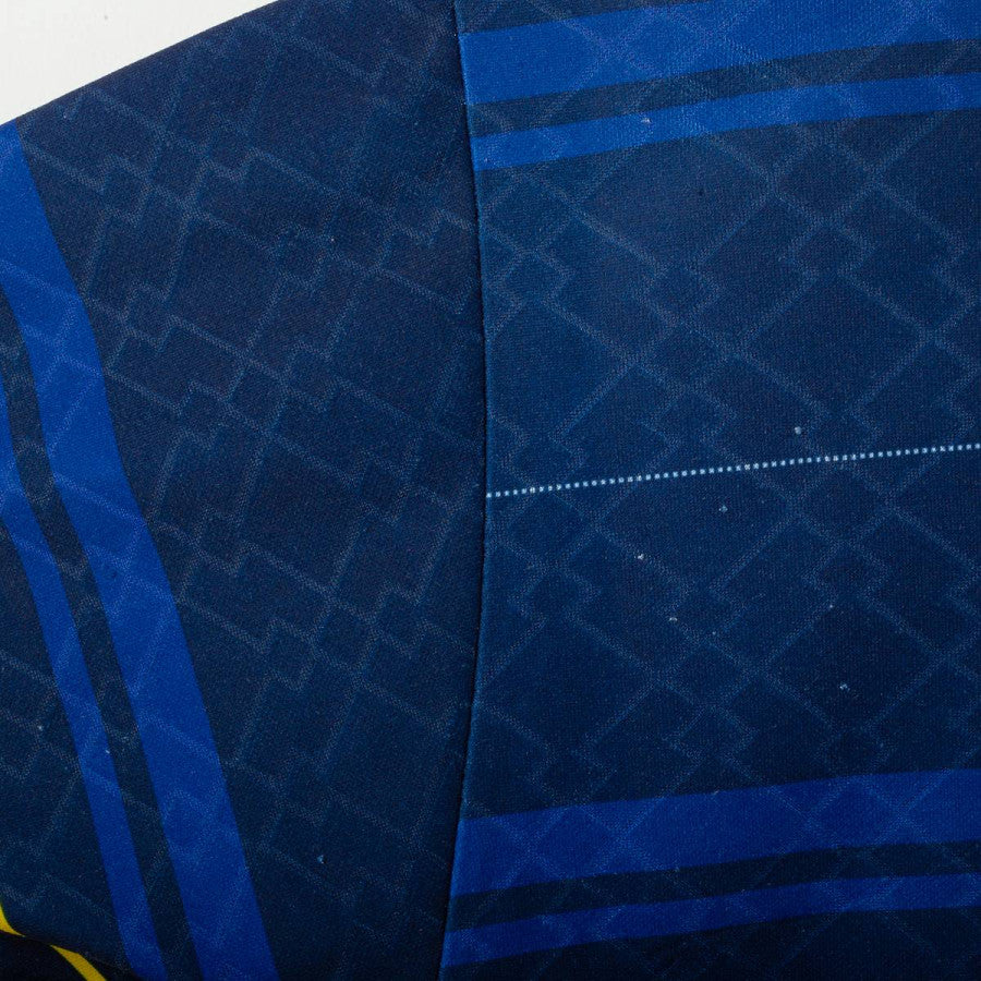 Maglia third del Parma AC indossata nella stagione 1998/1999, prodotta da Lotto. Design a base blu con fasce orizzontali nei toni del blu e del giallo. Colletto a polo blu con inserti gialli. Logo Parma AC cucito sul lato sinistro del petto, logo Lotto in rilievo plastico sul lato destro. Sponsor “Parmalat” stampato in bianco al centro. Nome “CRESPO” e numero 9 applicati sul retro in bianco. Vestibilità slim, maniche corte. Taglia 46 (M). Prodotto originale, Made in Italy.