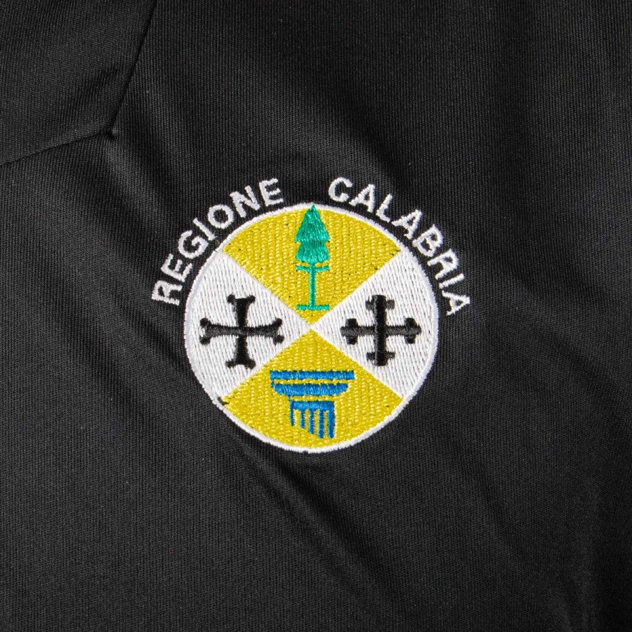 Modello a manica lunga e bottoncini a pressione al colletto. Sul fronte sono presenti cuciture decorative bianche a contrasto con il nero della maglia. Logo della regione Calabria ricamato lato cuore e patch della Regina sulla destra. Lo sponsor commerciale è Gicos. Sul retro sono stampate lettering BRIENZA ed il numero è 81. Patch della Lega Calcio applicata in gommina sul braccio destro.