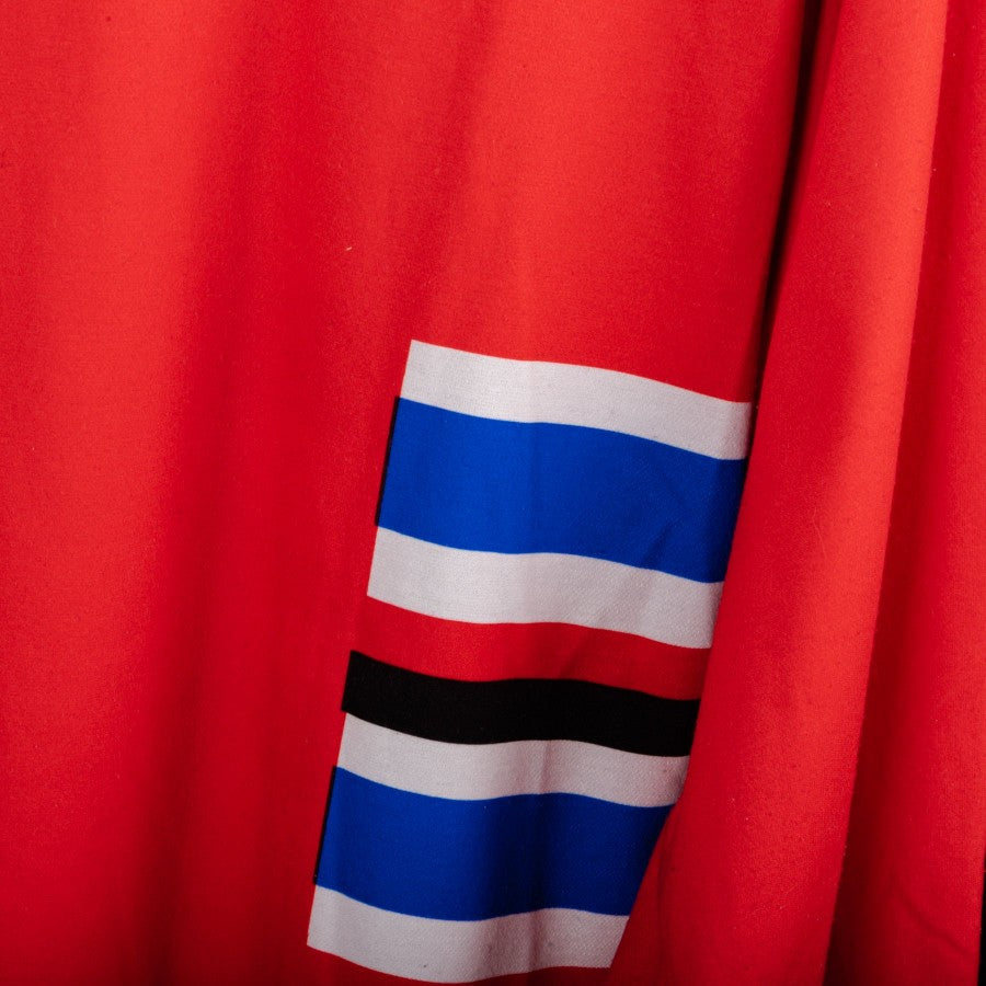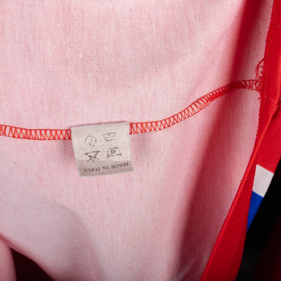 Modello a maniche lunghe di colore rosso con colletto rialzato e un bottone a pressione. Sulla destra troviamo il logo dello sponsor Asics, al centro lo sponsor commerciale ERG e sulla manica lo stemma della squadra.