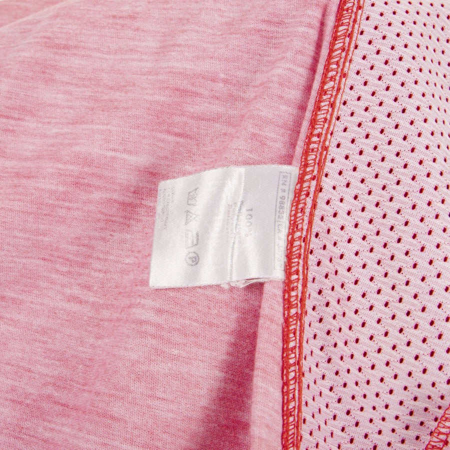 Modello a manica corta di colore rosso. La maglia veviva utilizzata per le sessioni di allenamento. Dallo scollo in maglina intrecciato, parte la bada di Omini Kappa in tessuto traspirante che si estende lungo le maniche. Le maniche e i fianchi sono in trama chicco di riso per donare maggiore traspirabilità. Il logo dello sponsor tecnico Kappa è presente anche sul fronte, ricamato di bianco con bordino nero, al lato cuore ricamato lo sponsor commerciale Festival Crociere. Al centro applicato il lettering Genoa. Sul dorso presente in flock il logo Kappa.