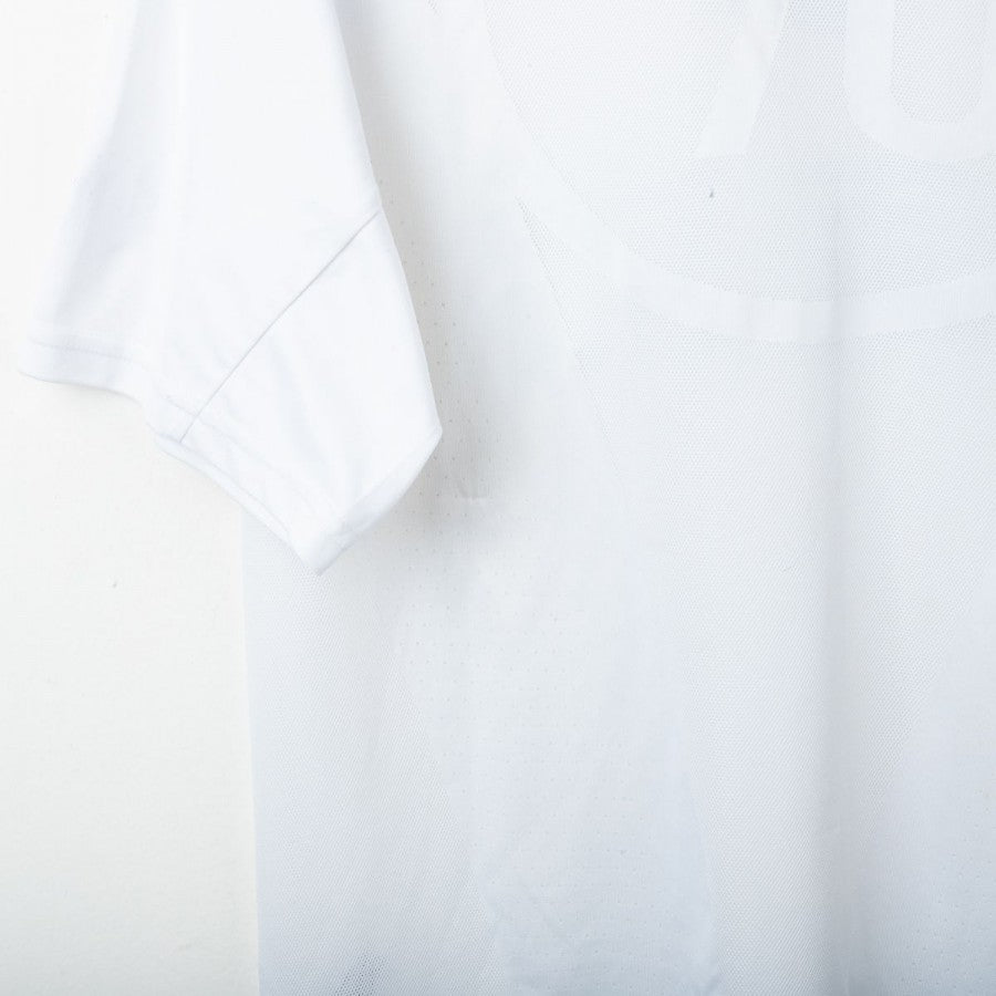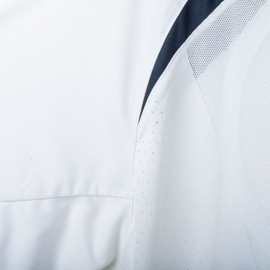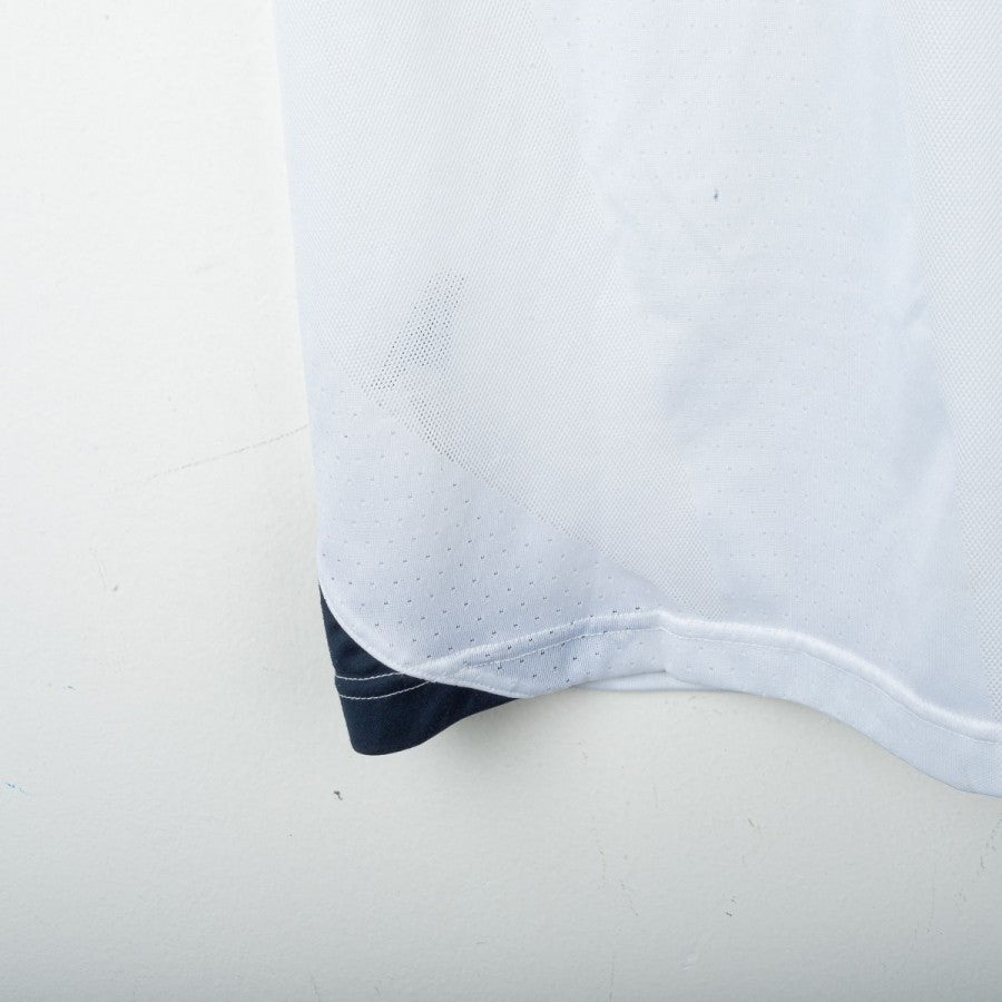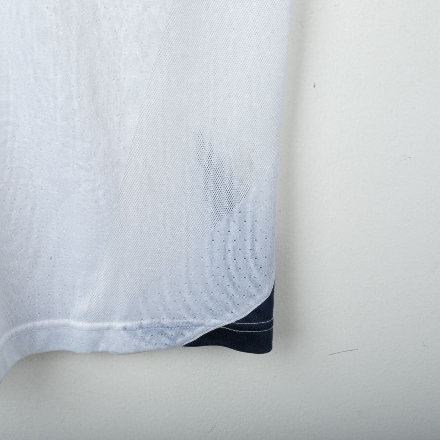 Maglia training dell'Inter prodotta da Nike per la stagione 2005/2006. Modello a maniche corte di colore bianco con inserti blu navy sulle spalle e ai lati. Logo Nike ricamato in rosso sul petto destro e stemma Inter 1908 ricamato al centro. Sponsor Pirelli applicato in stampa gommata nera sul fronte. Sul retro, grande numero “90” stampato tono su tono. Ricamo “INTER” in rosso sulla manica sinistra e logo Nike 90 ricamato su quella destra.