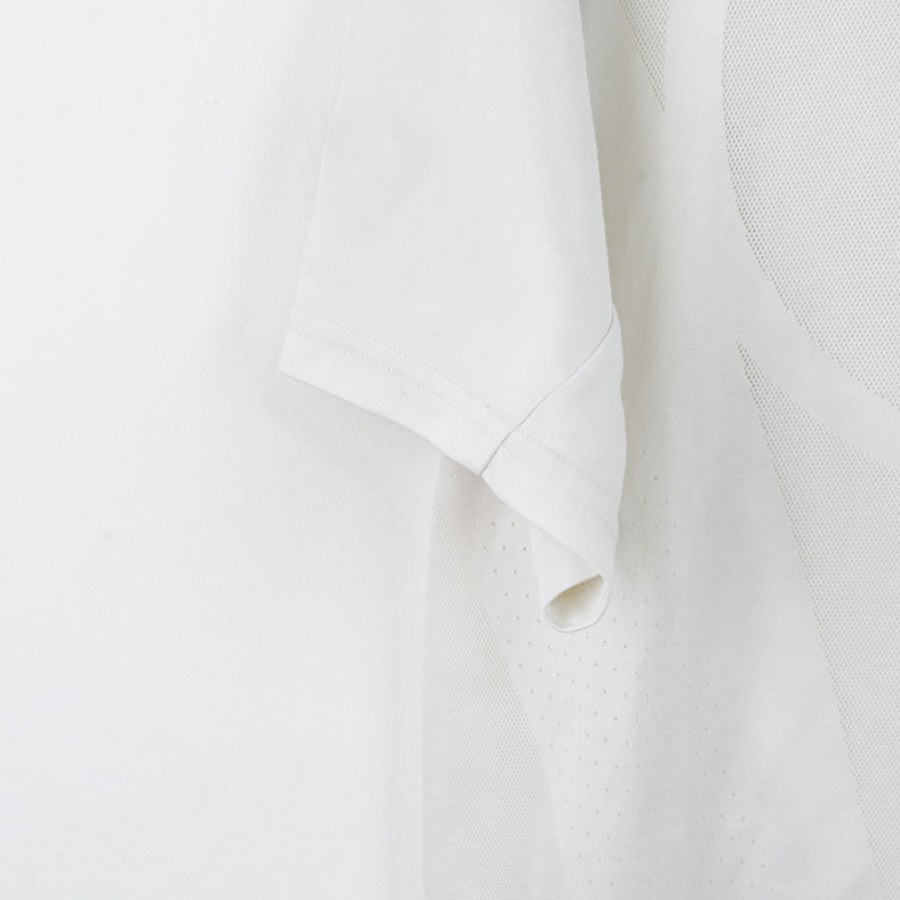 Maglia da allenamento ufficiale dell'Inter, stagione 2005/2006, prodotta dallo sponsor tecnico Nike e con lo sponsor commerciale Pirelli in evidenza. Il design presenta un elegante colore bianco con inserti blu scuro sulle spalle e sui lati, conferendo un look moderno e dinamico. Lo stemma dell'Inter è applicato sul lato cuore, mentre il logo Nike è ricamato sulla parte destra del petto. Sul retro è presente un grande logo "90", caratteristico delle maglie Nike di quel periodo. La taglia indicata è S, perfetta per collezionisti o appassionati della squadra nerazzurra.